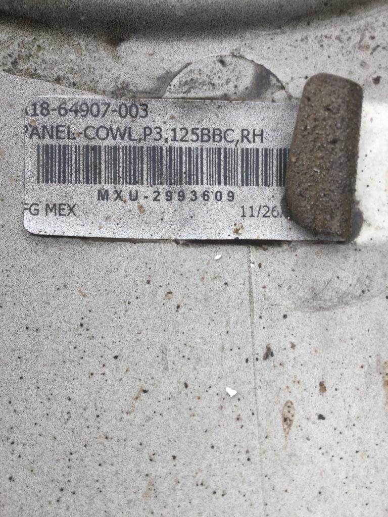 S17L0145 - USED COWL OFF OF A 2015 FREIGHTLINER CASCADIA 125