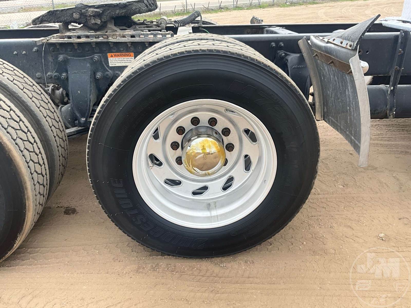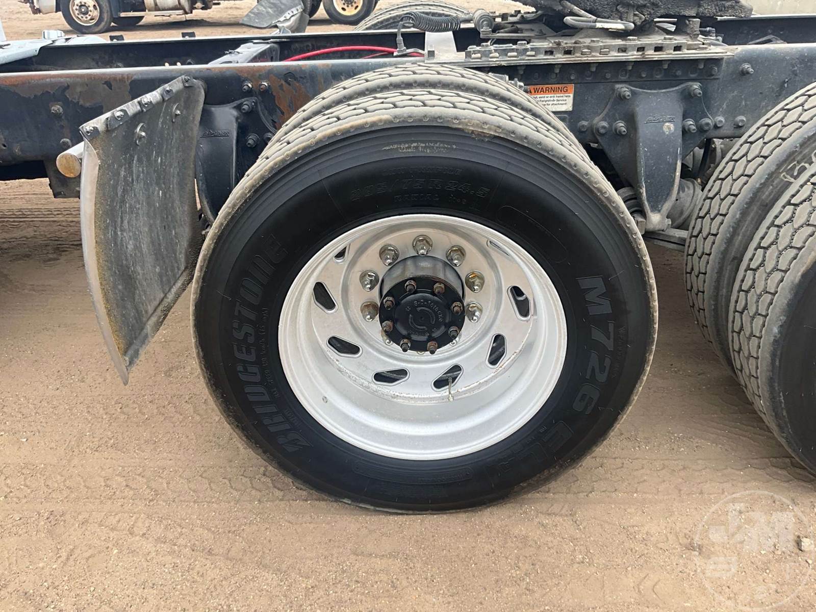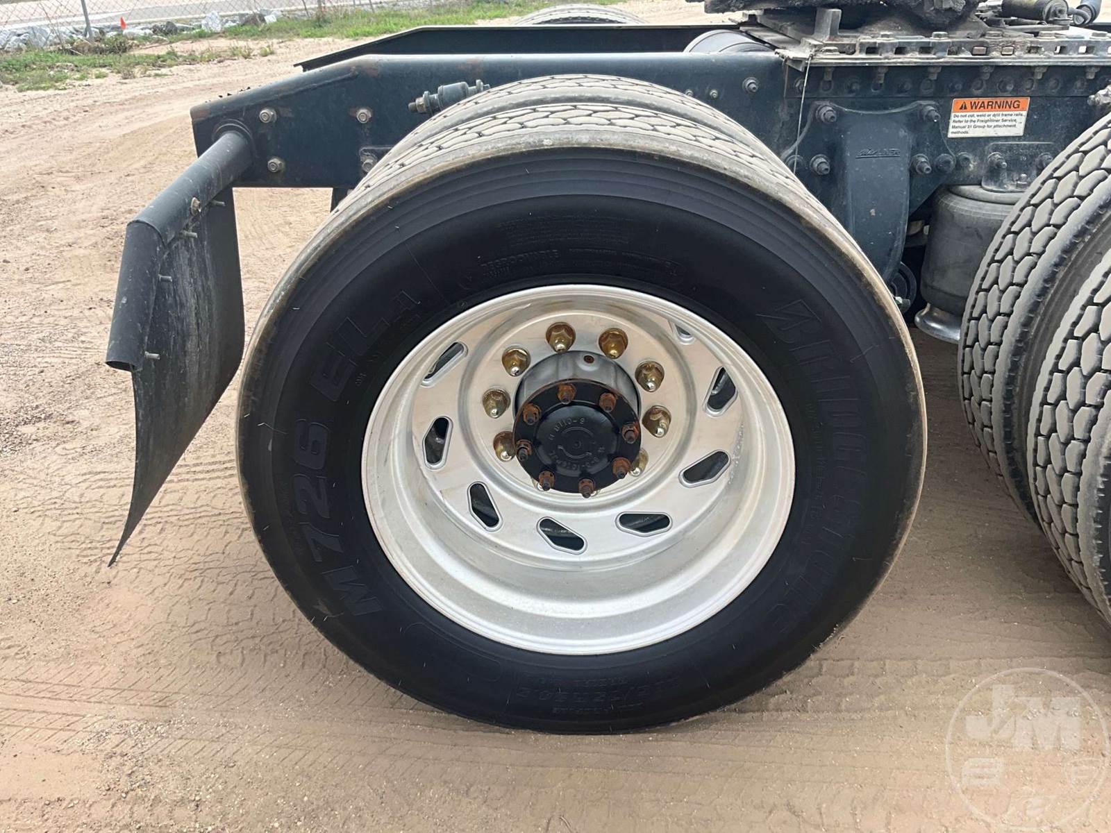 TANDEM AXLE DAY CAB TRUCK TRACTOR, DETROIT, EATON FULLER, 13 SPEED, AIR RIDE SUSPENSION, DRUM, 216 " WB, C/A: 124, 12K FRONTS, 40K REARS, 52000 GVWR, AIR SLIDE FIFTH WHEEL, A/C, AIR DRIVERS SEAT, CRUISE CONTROL, POWER WINDOWS, POWER MIRRORS, ENGINE BRAKE, DIFF LOCK, AIR RIDE CAB, ALUM DISC WHEELS, 285/75R24.5 TIRES, HOUR METER READS: 27057, ODOMETER READS: 793078