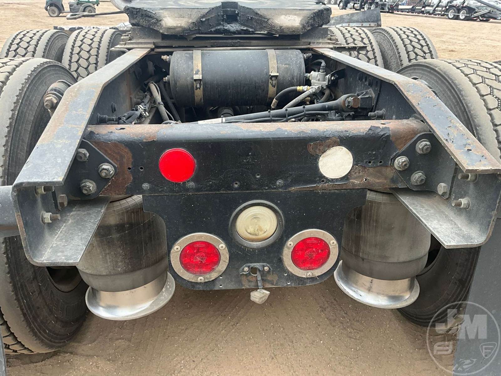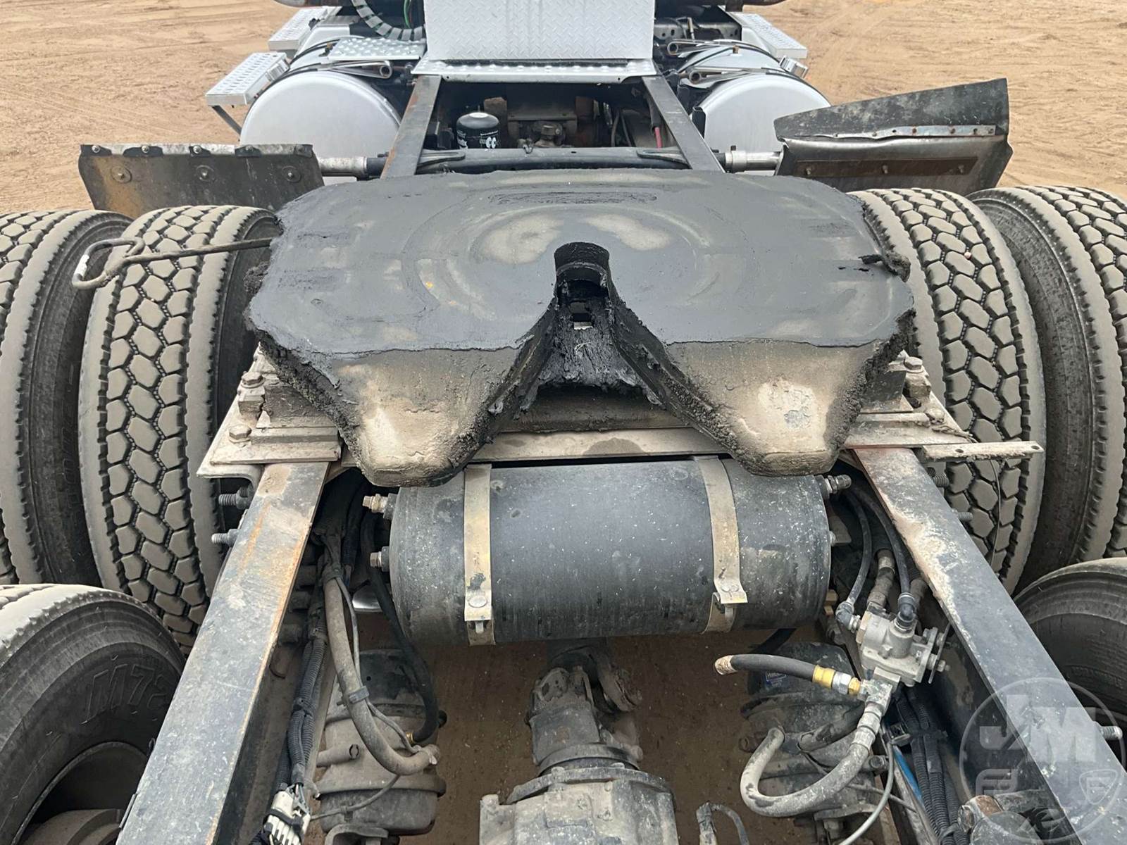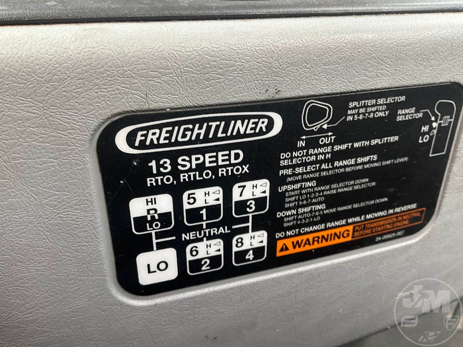 TANDEM AXLE DAY CAB TRUCK TRACTOR, DETROIT, EATON FULLER, 13 SPEED, AIR RIDE SUSPENSION, DRUM, 216 " WB, C/A: 124, 12K FRONTS, 40K REARS, 52000 GVWR, AIR SLIDE FIFTH WHEEL, A/C, AIR DRIVERS SEAT, CRUISE CONTROL, POWER WINDOWS, POWER MIRRORS, ENGINE BRAKE, DIFF LOCK, AIR RIDE CAB, ALUM DISC WHEELS, 285/75R24.5 TIRES, HOUR METER READS: 27057, ODOMETER READS: 793078