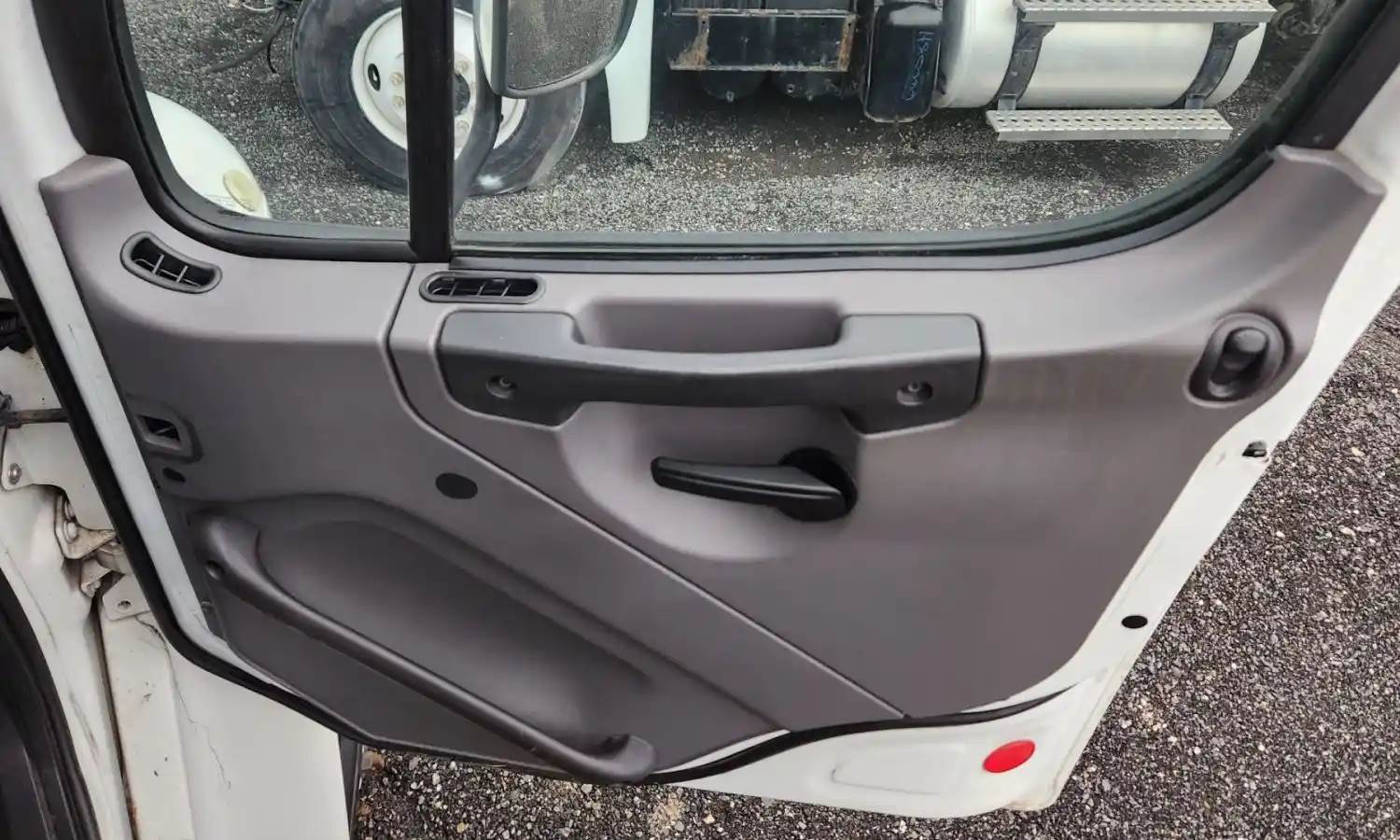 (Used) 2015 Freightliner M2 106, INTERIOR DOOR PANEL- Side: Passenger Right Side, Color: Grey, Type: Power, Material: Plastic, Reference images for condition, For more information about this item, give us a call. We ship Worldwide! (CRG HEAVY TRUCK PARTS) 929 W PULASKI HWY ELKTON, MD 21921, Material: Plastic
