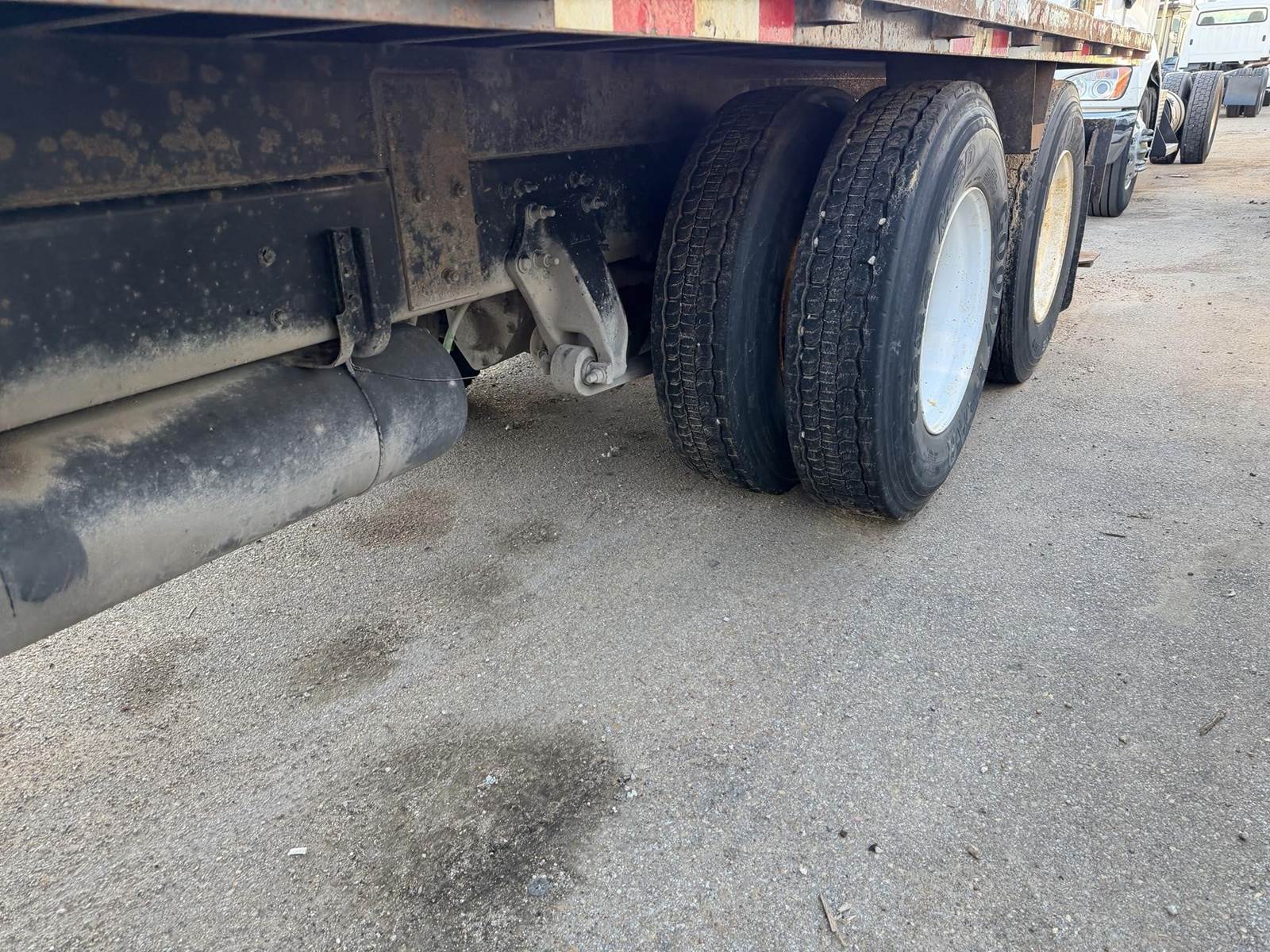 NICE TRUCK, RUNS EXCELLENT, 24 FT FLAT BED, FORK-LIFT PACKAGE ON FLAT BED, SLIDING WINCHES, AIR BRAKES, AIR SEAT, STEERABLE AIR LIFT AXLE!,