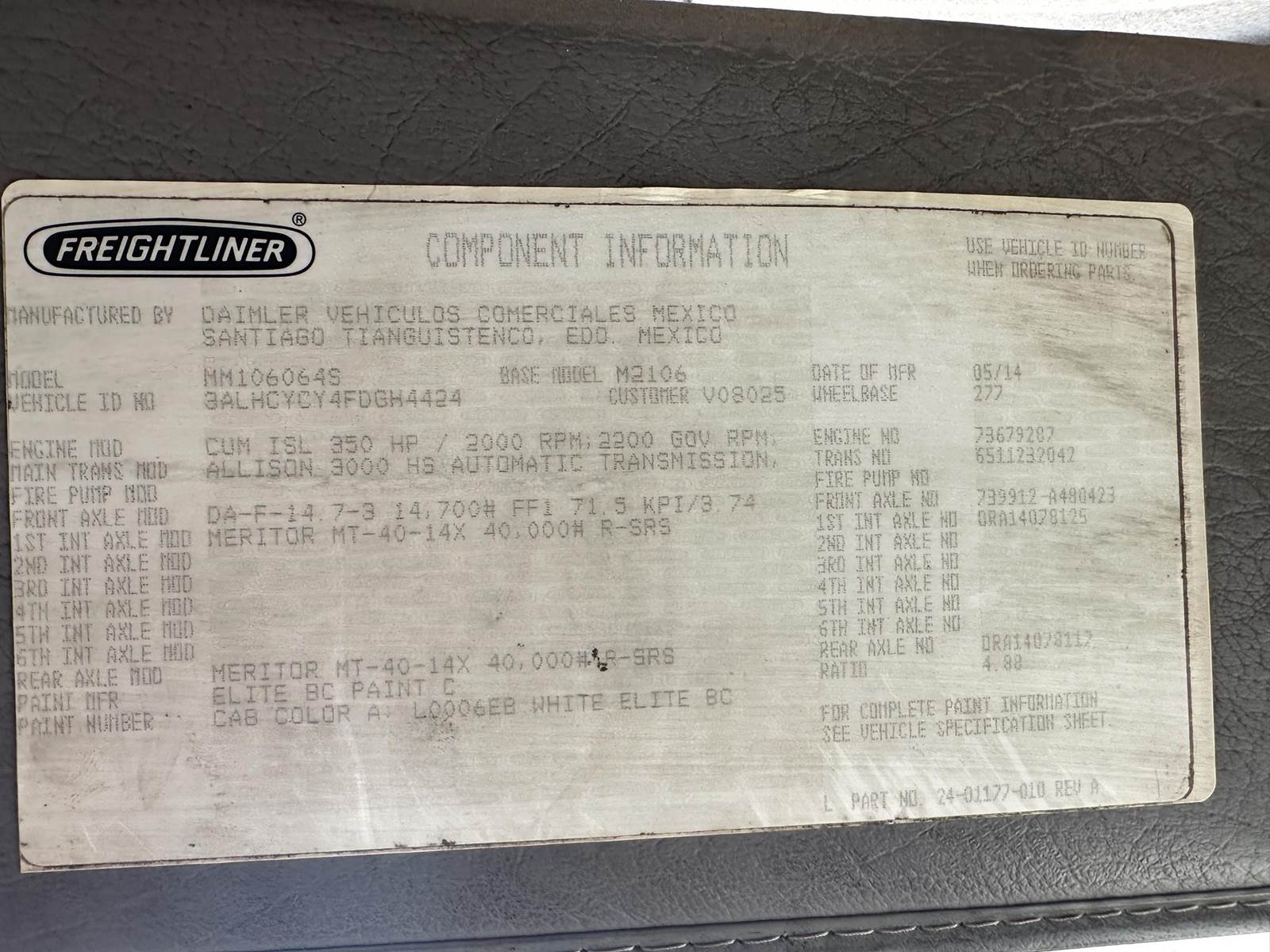 Cummins ISL 350 hp, Allison 3000HS Automatic Transmission