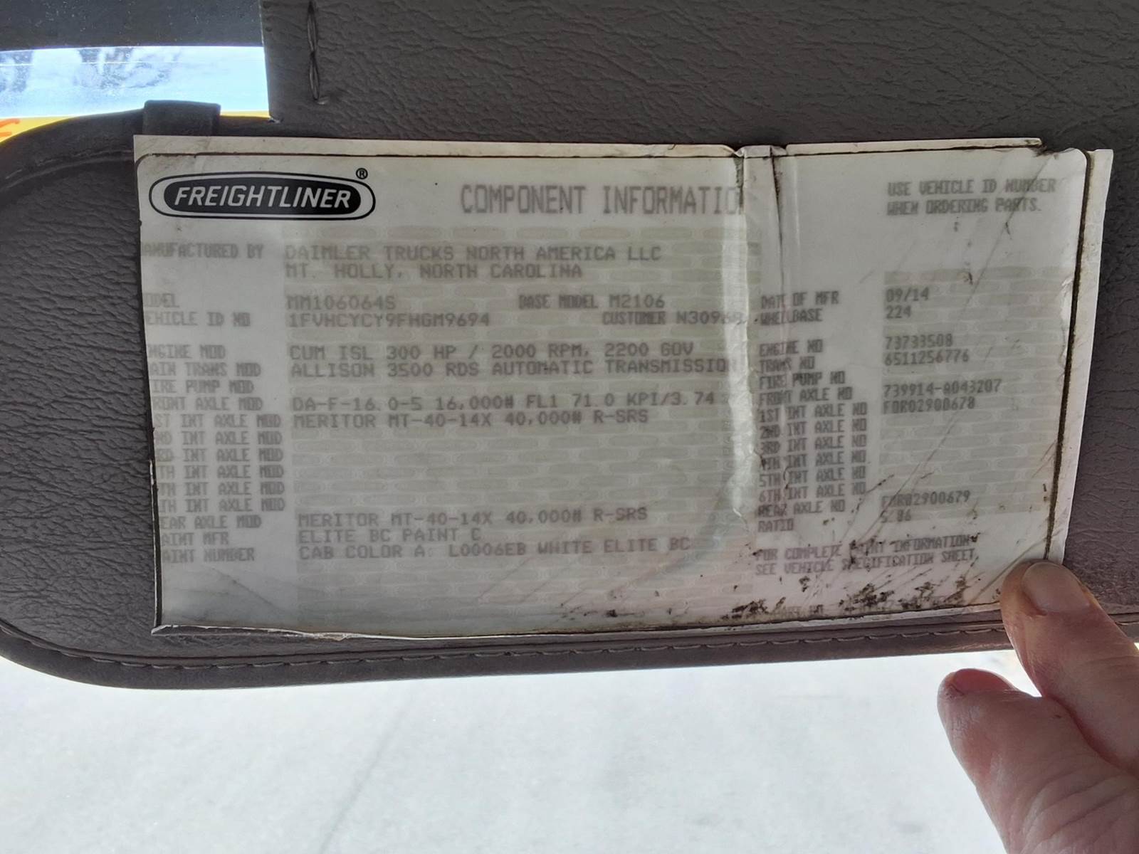 2014 Freightliner M2 330 hp 9.9L ISL Cummins, 6 speed Allison 3000RDS, AM/FM, A/C, tilt, cruise, heated mirrors, locking differential, 16K...