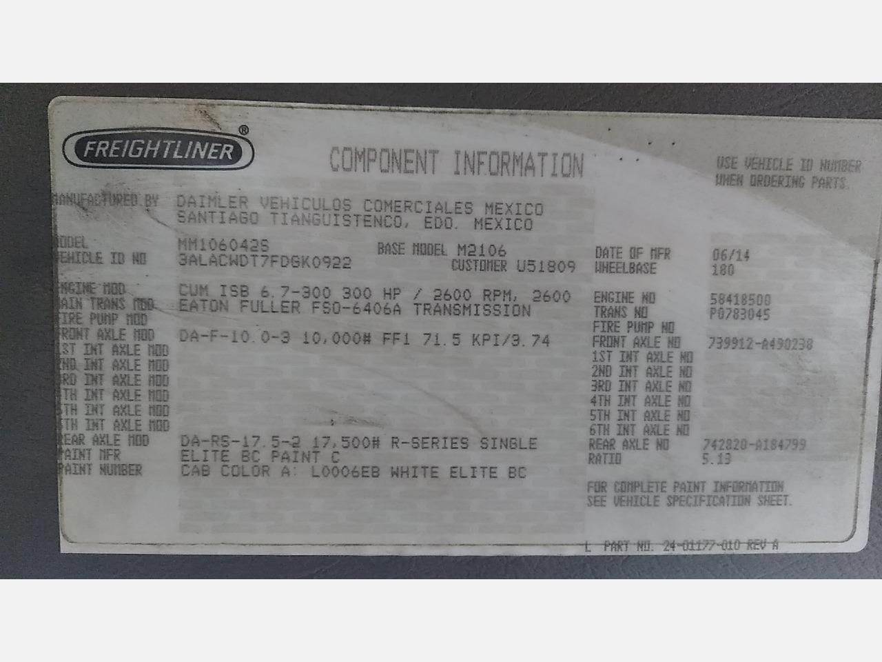 FOR SALE! A USED 2015 Single Wilkie 60ft Boom Truck. This unit includes a 300 HP Cummins ISB 6.7L engine, and a Eaton FSO-6406A 6 transmission. Additional inspection observations included: Oil leak at oil pan gasket area & valve cover gasket, PTO & transmission are leaking. The unit is sold as-is, where-is in Waterloo, IA. Ask about our preferred transportation vendors! We also offer a wide range of flexible, easy-to-use lease or loan options on select equipment. Additional notes, reports, and videos can be found by clicking on the circle "inspection" icon below.
