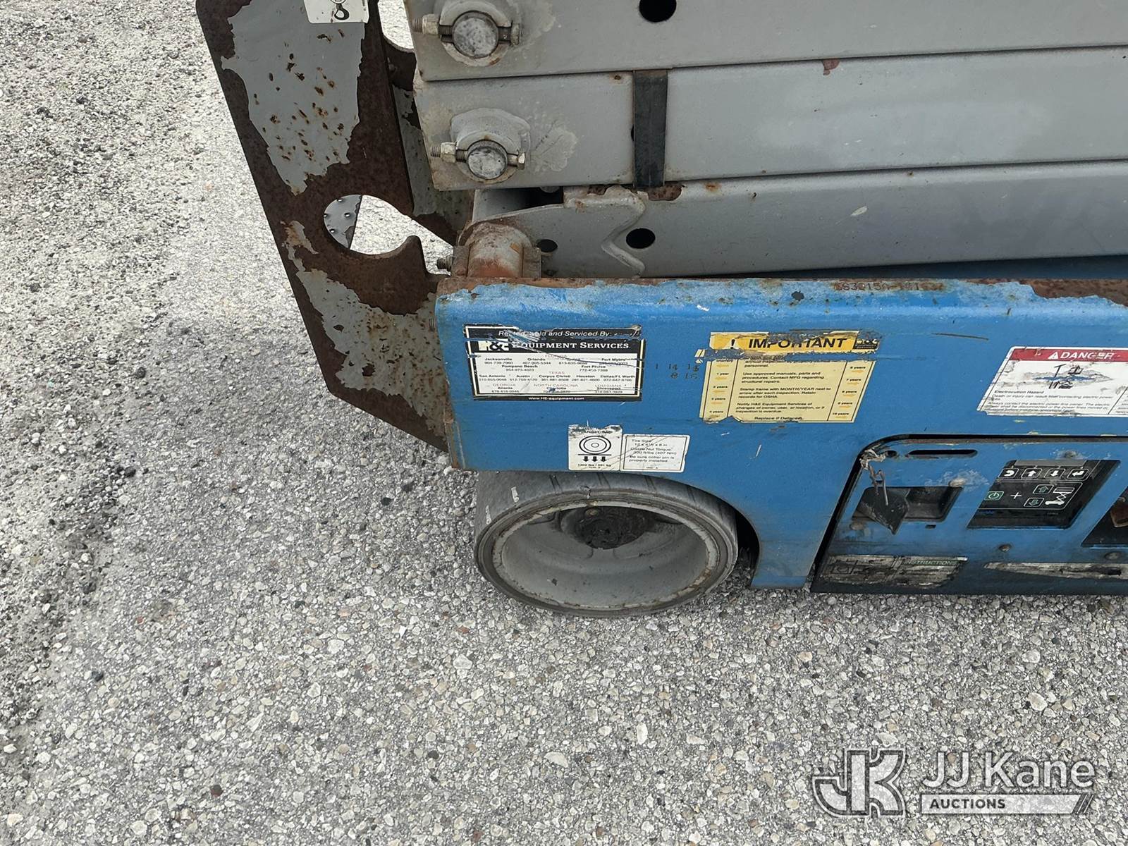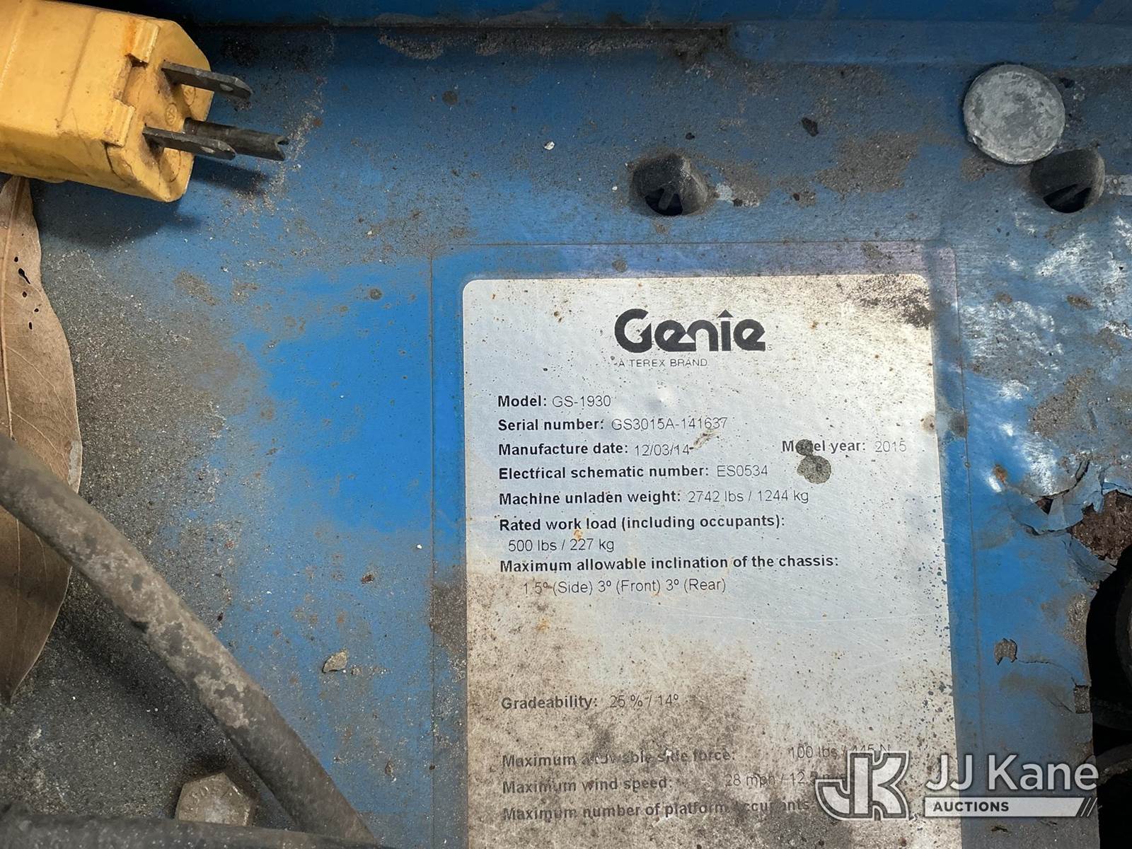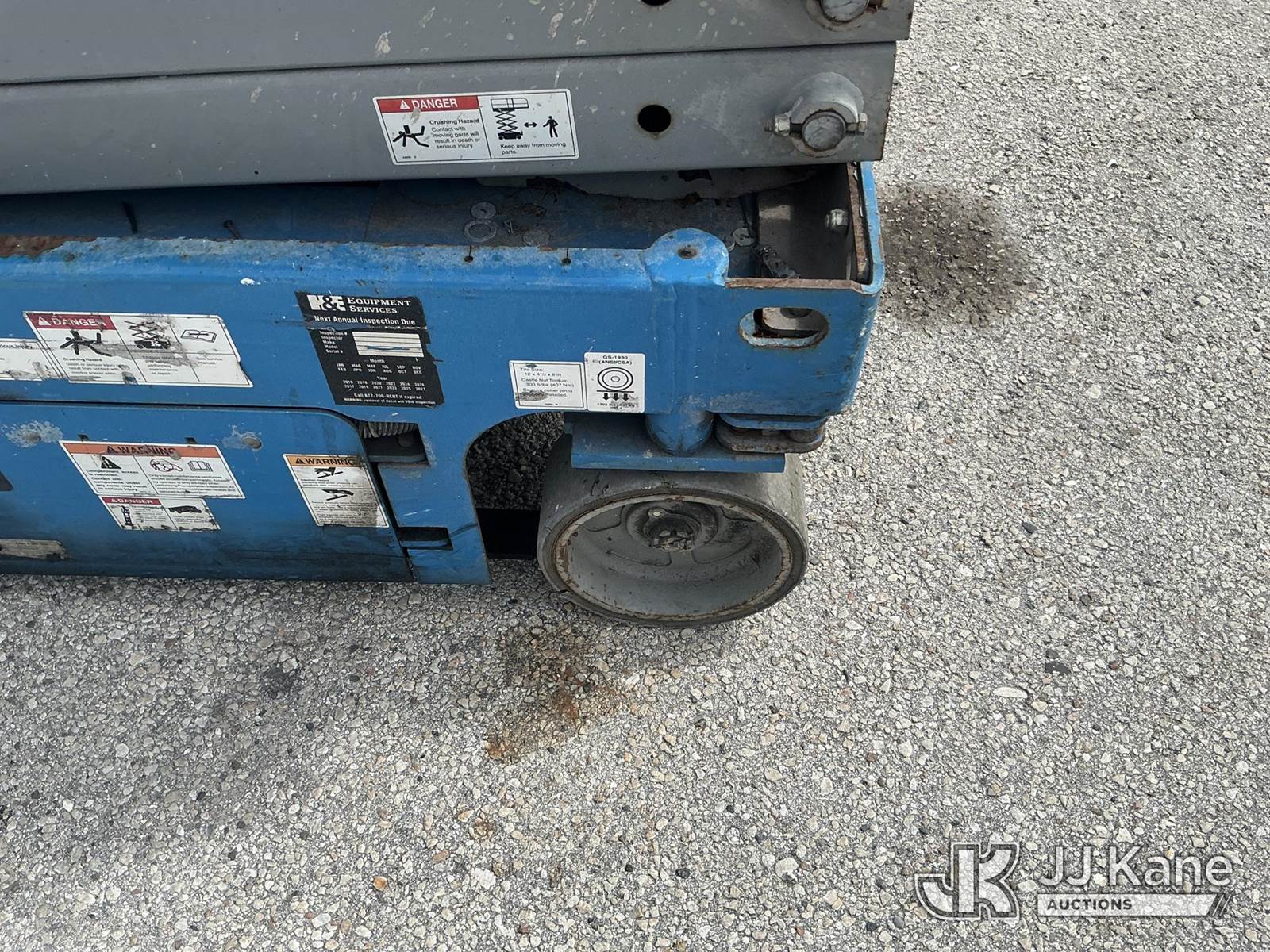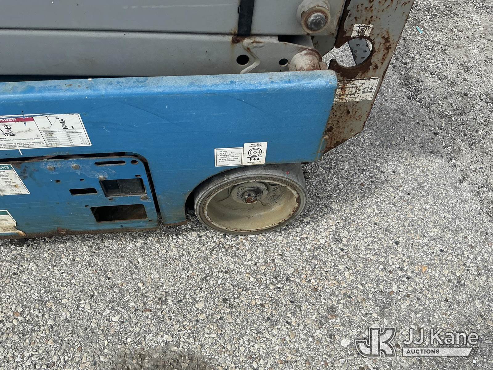 2015 Genie GS1930 Scissor Self Propelled Man Lift, s/n GS3015A-141637, electric, Hydrostatic, (Moves & Operates)(Remote Inside) (Reads 263 hours) NOTE: This unit is being sold AS IS/WHERE IS via Timed Auction and is located in Thonotosassa, FL. Inspection & preview days for this unit are the 2 business days prior to the first day of items closing for this auction, item is located at 11720 N US 301 Thonotosassa, Fl 33592 and hours of operations are 8a-4p. For pre-sale questions, please contact Office Staff @ (813) 986-2485. (Buyer is responsible for removal. Assistance by consignor or JJ Kane Auctions is not assured.)