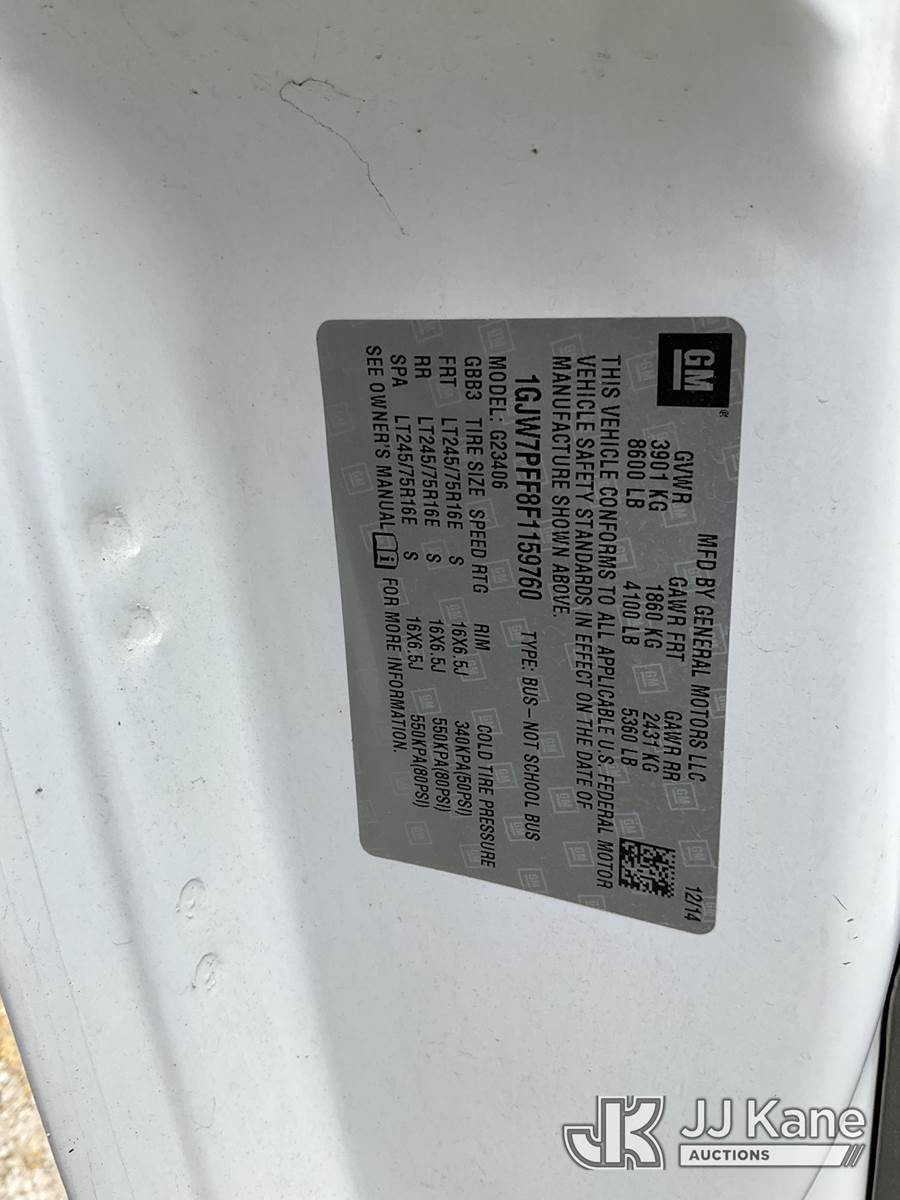 2015 GMC Savana LS G2500 Cargo Van, s/n 1GJW7PFF8F1159760, 4.8L V8 OHV 16V RWD, FFV, 6-Speed Automatic, A/C, (126,339 miles) (Runs & Moves, Monitors Will Not Clear For Smog) (Bidding Restricted to Licensed Vehicle Dealers Only), This is a Titled Item NOTE: This unit is being sold AS IS/WHERE IS via Timed Auction and is located in Dixon, CA. Inspection & preview days for this unit are the 2 business days prior to the first day of items closing for this auction, item is located at 8668 Sparling Ln Dixon, CA 95620 and hours of operations are 8a-4p. For pre-sale questions, please contact JJ Kane Staff at (707) 678-8060 (dixon@jjkane.com). Dealer License Number 45696. (Buyer is responsible for removal. Assistance by consignor or JJ Kane Auctions is not assured.)
