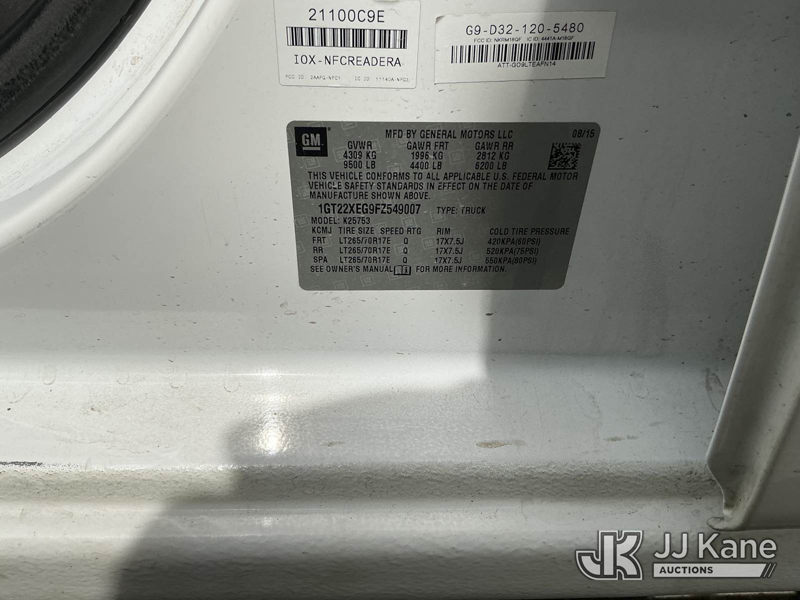 2015 GMC Sierra 2500HD Extended-Cab Pickup Truck, s/n 1GT22XEG9FZ549007, 6.0L V8 OHV 16V 4WD, FFV, 6-Speed Automatic, A/C, with front winch, (190,145 miles) (Runs & Moves) This is a Titled Item NOTE: This unit is being sold AS IS/WHERE IS via Timed Auction and is located in Dixon, CA. Inspection & preview days for this unit are the 2 business days prior to the first day of items closing for this auction, item is located at 8668 Sparling Ln Dixon, CA 95620 and hours of operations are 8a-4p. For pre-sale questions, please contact JJ Kane Staff at (707) 678-8060 (dixon@jjkane.com). Dealer License Number 45696. (Buyer is responsible for removal. Assistance by consignor or JJ Kane Auctions is not assured.)