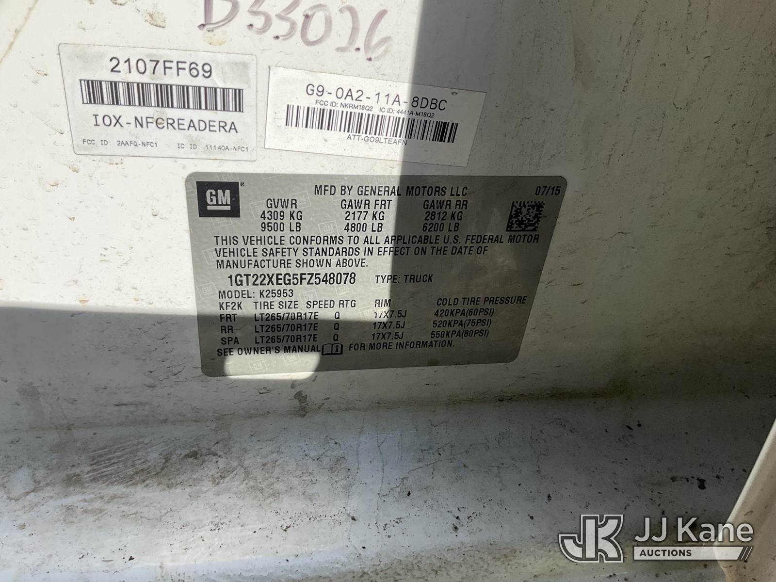 2015 GMC Sierra 2500HD Extended-Cab Pickup Truck, s/n 1GT22XEG5FZ548078, 6.0L V8 OHV 16V 4WD, FFV, 6-Speed Automatic, A/C, with Tow package, (205,998 miles) (Runs & Moves, Passenger Side Body Damage) This is a Titled Item NOTE: This unit is being sold AS IS/WHERE IS via Timed Auction and is located in Dixon, CA. Inspection & preview days for this unit are the 2 business days prior to the first day of items closing for this auction, item is located at 8668 Sparling Ln Dixon, CA 95620 and hours of operations are 8a-4p. For pre-sale questions, please contact JJ Kane Staff at (707) 678-8060 (dixon@jjkane.com). Dealer License Number 45696. (Buyer is responsible for removal. Assistance by consignor or JJ Kane Auctions is not assured.)
