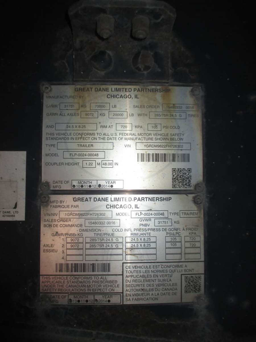 2015 Great Dane FLATBED 48/102 Flatbed Trailer