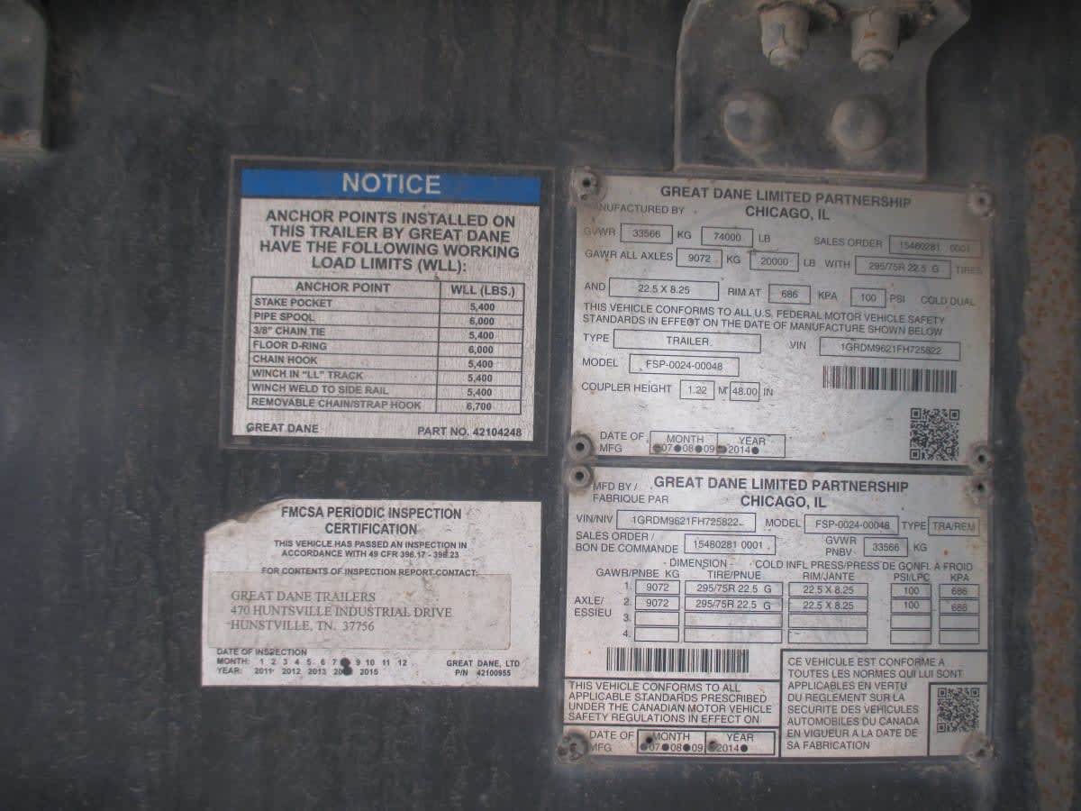 2015 Great Dane FLATBED 48/102 Flatbed Trailer