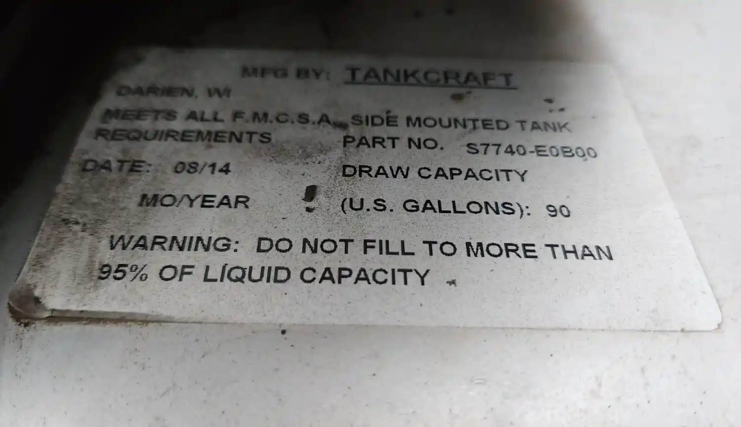 (Used) 2015 Hino 268, FUEL TANK- Part Number: S7740-E0B00, Side: Driver Left Side, Capacity: 90 Gallons, Material: Aluminum, Shape: Rectangular, Dimensions: L=52", H=20", W=21", For more information about this item, give us a call. We ship Worldwide! (CRG HEAVY TRUCK PARTS) 929 W PULASKI HWY ELKTON, MD 21921, Capacity: 90 Gallons, Dimensions: L=52", H=20", W=21", Material: Aluminum, Shape: Rectangular