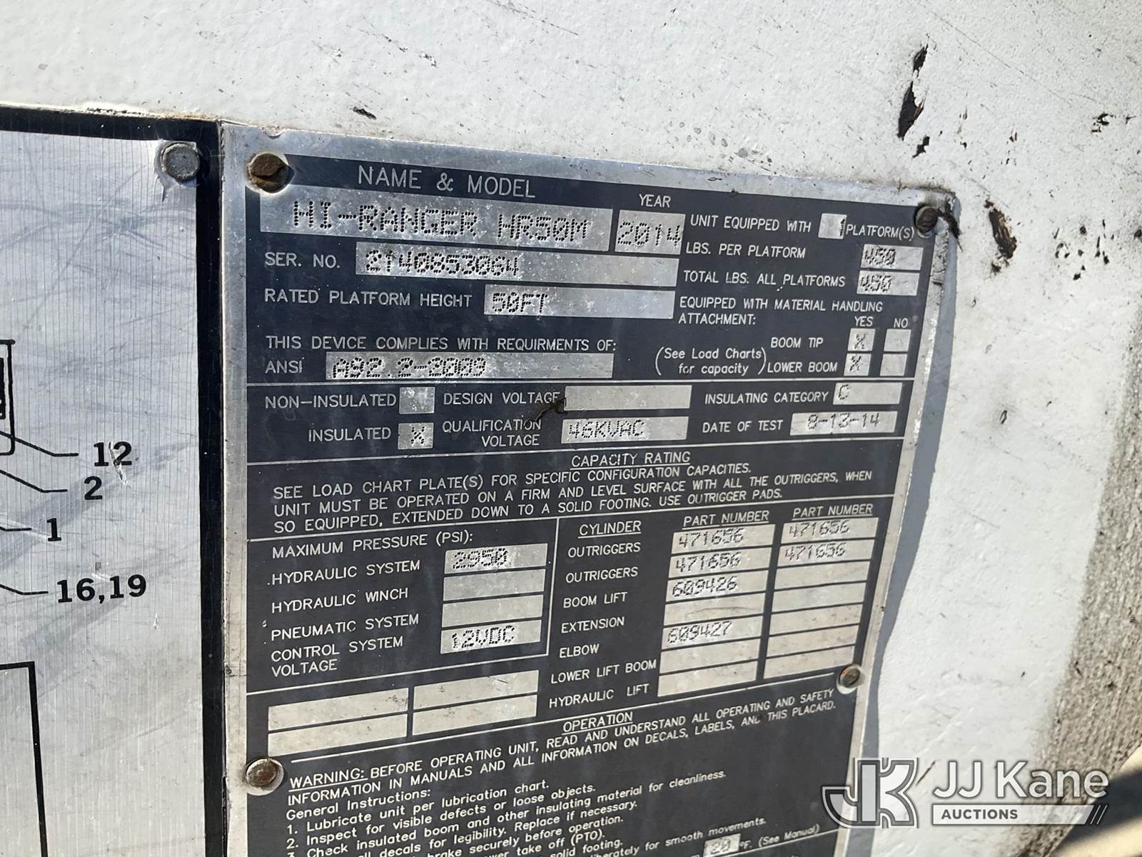 HiRanger HR50-M, 55 ft, Material Handling Bucket Truck s/n 2140853064, with single-man bucket & 4 hyd outriggers, rear mounted on 2015 International DuraStar 4300 Utility Truck, MaxxForce 7.6L Auto, diesel, A/C, (123,748 miles) (Runs, Moves & Upper Operates) (Check Engine Light On) (Reads 10,070 hours) This is a Titled Item NOTE: This unit is being sold AS IS/WHERE IS via Timed Auction and is located in Shrewsbury, MA. Inspection & preview days for this unit are the 2 business days prior to the first day of items closing for this auction, item is located at 11 Fortune Blvd Shrewsbury, MA 01545 and hours of operations are 8a-4p. For pre-sale questions, please contact Rob Gifford @ (508) 864-4126. (Missing manuals, See Auction Company for Manufacturers Information to obtain manuals) (Buyer is responsible for removal. Assistance by consignor or JJ Kane Auctioneers is not assured.)
