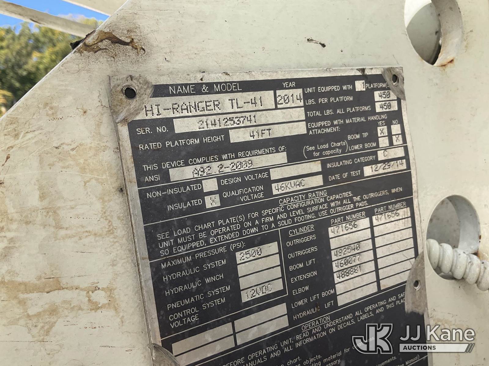 HiRanger/Terex TL41, 46 ft, Articulating & Telescopic Material Handling Bucket Truck s/n 2141253741, with single-man bucket & 2 hyd outriggers, mounted behind cab on 2015 International DuraStar 4300 Utility Truck, MaxxForce 7.6L Auto, diesel, A/C, (145,968 miles) (Runs & Moves) (Seized Outriggers, Road Side Outrigger Does Not Retract, Upper Condition Unknown, Check Engine Light On, Seller States: Bad Engine, Oil & Coolant Mixing) (Reads 11,965 hours) This is a Titled Item NOTE: This unit is being sold AS IS/WHERE IS via Timed Auction and is located in Shrewsbury, MA. Inspection & preview days for this unit are the 2 business days prior to the first day of items closing for this auction, item is located at 11 Fortune Blvd Shrewsbury, MA 01545 and hours of operations are 8a-4p. For pre-sale questions, please contact Rob Gifford @ (508) 864-4126. (Missing manuals, See Auction Company for Manufacturers Information to obtain manuals) (Buyer is responsible for removal. Assistance by consignor or JJ Kane Auctions is not assured.)