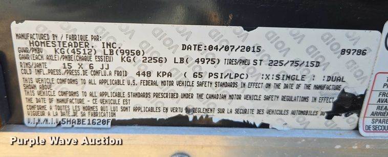 2015 Homesteader 816PT enclosed cargo trailer