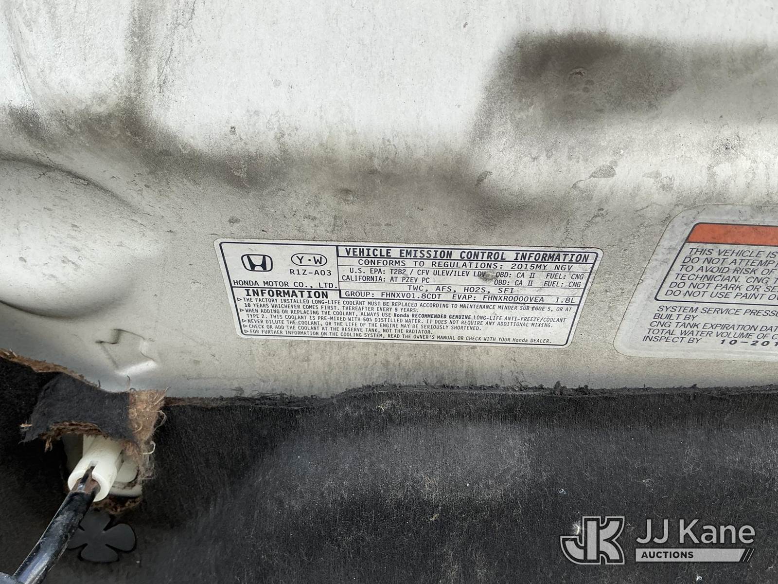 2015 Honda Civic 4-Door Sedan, s/n 19XFB5F53FE000059, 1.8L L4 SOHC 16V CNG FWD, 5-Speed Automatic, A/C, (8,049 miles) (Runs Moves) (CNG...