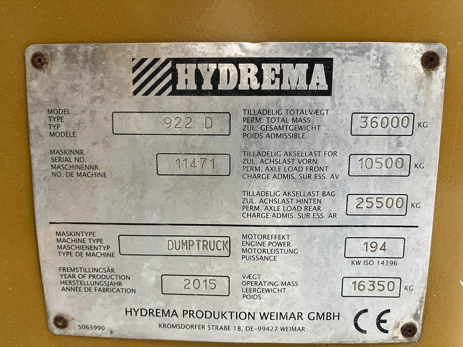 2015 Hydrema 922D Off-Highway Truck