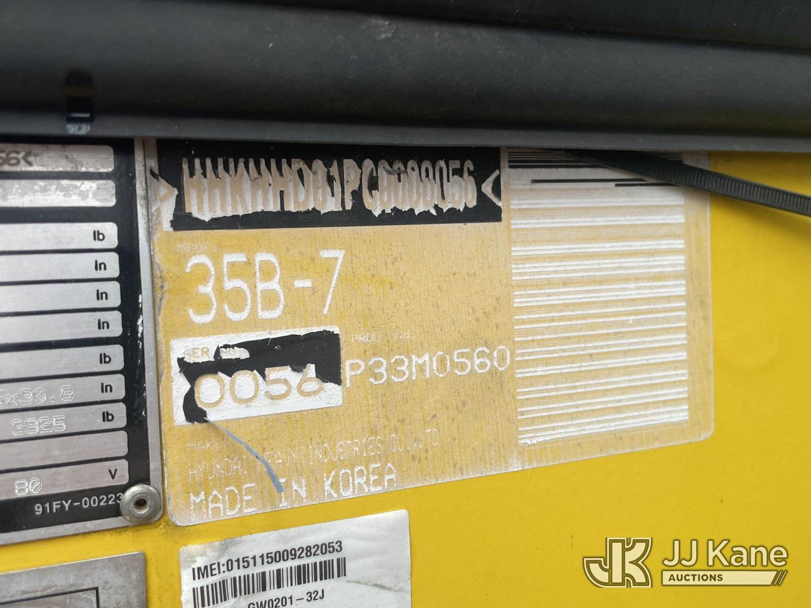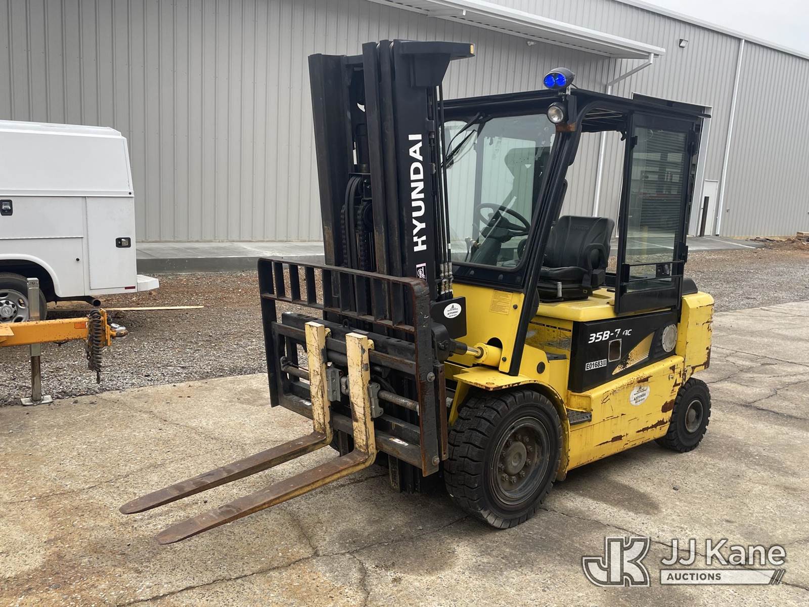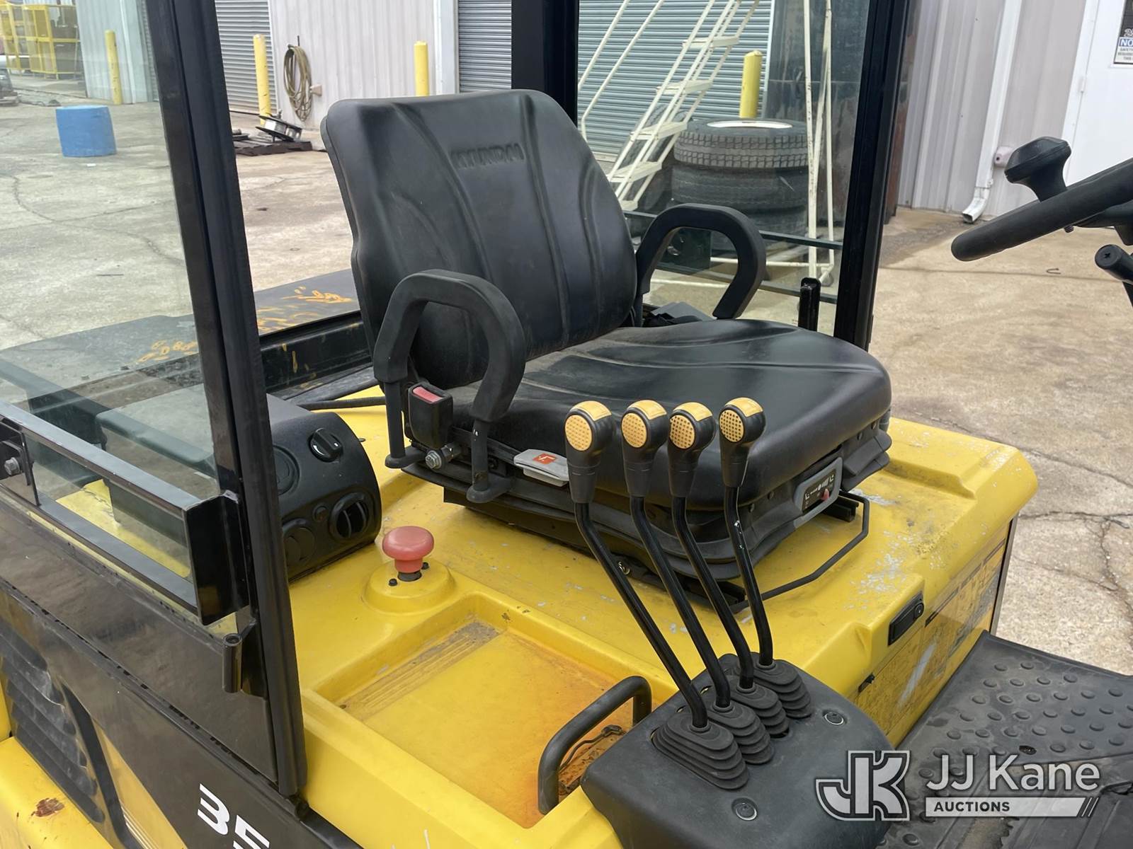 2015 Hyundai 35B-7 Pneumatic Tired Forklift, s/n P33M0560, battery powered, Shuttle, with #6,945lbs capacity, 185 in 3-stage mast, fork positioners, side shift, charger, (Runs, Moves & Operates) (Battery Doesn’t Hold Charge For Long, Comes with Battery Charger Pictured) (Reads 5,311 hours) NOTE: This unit is being sold AS IS/WHERE IS via Timed Auction and is located in Anniston, AL. For more information & removal arrangements please contact Dylan Evans @ 205-936-1094. Alabama Auctioneer Michael Whitebread - License # 5592. (Buyer is responsible for removal. Assistance by consignor or JJ Kane Auctions is not assured.)