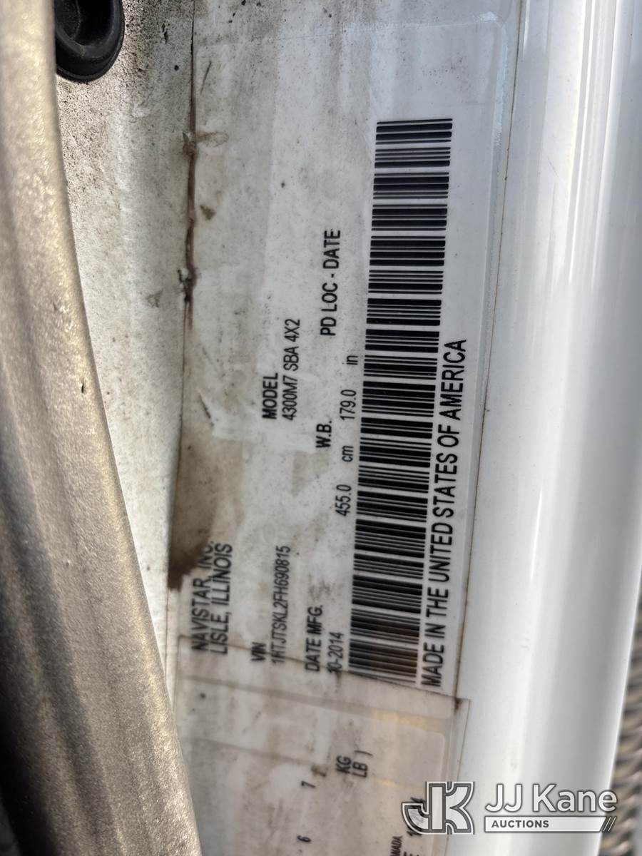 2015 International 4300 Air Compressor/Enclosed Utility Truck, MaxxForce 7, 6.4L diesel, Auto, A/C, (48,439 miles) (Runs & Moves, Check Engine Light On ) This is a Titled Item NOTE: This unit is being sold AS IS/WHERE IS via Timed Auction and is located in Rome, NY. Inspection & preview days for this unit are the 2 business days prior to the first day of items closing for this auction, item is located at 5835 Success Dr Rome, NY 13440 and hours of operations are 8a-4p. For pre-sale questions, please contact Ryan Jackson @ (315) 749-3790 or Ryan.Jackson@jjkane.com. Sales Tax Collected Based on Residency (Buyer is responsible for removal. Assistance by consignor or JJ Kane Auctions is not assured.)