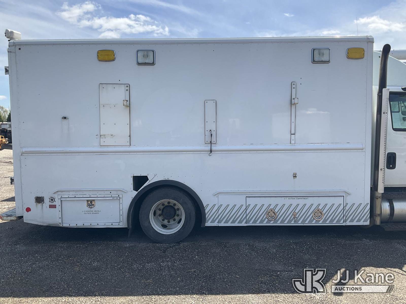 2015 International 4300 Enclosed Utility/Air Compressor Truck, 7.6L L6 Diesel, 4X2, Auto, A/C, with Boss Air Compressor, (65,905 miles) (Collision Issues)(Runs, Drivetrain Components Disconnected or Missing)(Dash Warning Indicators On, Exterior Defects-see photos, Interior Defects-see photos)(Seller States-ran & moved good before accident) This is a Titled Item NOTE: This unit is being sold AS IS/WHERE IS via Timed Auction and is located in South Beloit, IL. Inspection & preview days for this unit are the 2 business days prior to the first day of items closing for this auction, item is located at 14354 Dearborn Ave South Beloit, IL and hours of operations are 8a-4p. For pre-sale questions, please contact Derek Eklund at (608) 904-0618 or (derek.eklund@jjkane.com). (Buyer is responsible for removal. Assistance by consignor or JJ Kane Auctions is not assured.)