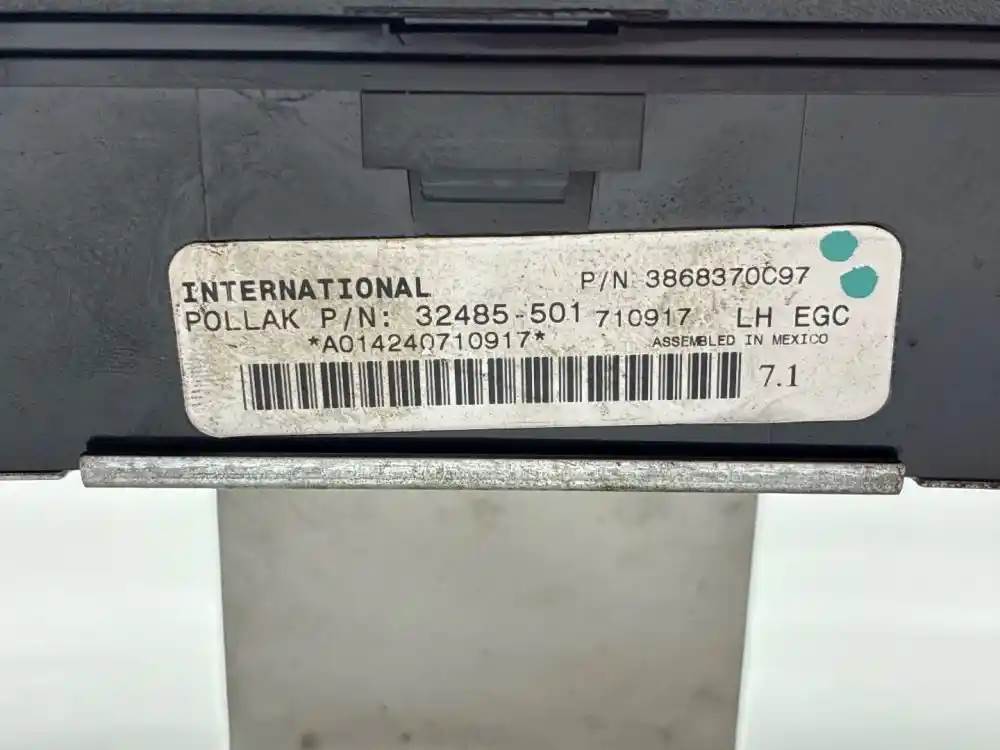 (Used) 2015 International DuraStar 4300 INSTRUMENT CLUSTER Gauges: Oil Pressure, Water Temp, RPM, Fuel Level, Air Press(1) Air Press.(2), DEF Level, Battery Voltage, Trans. Temp, Controls: Mirror, Lamp, High Beams ~Low Beams ~Off, 6th Gear ~Disable, Parkd Regen~ On, For more information about this item, give us a call. We ship Worldwide! (CRG HEAVY TRUCK PARTS) 929 W PULASKI HWY ELKTON, MD 21921, Engine Make: Cummins, Engine Model: ISB 260; B6.7