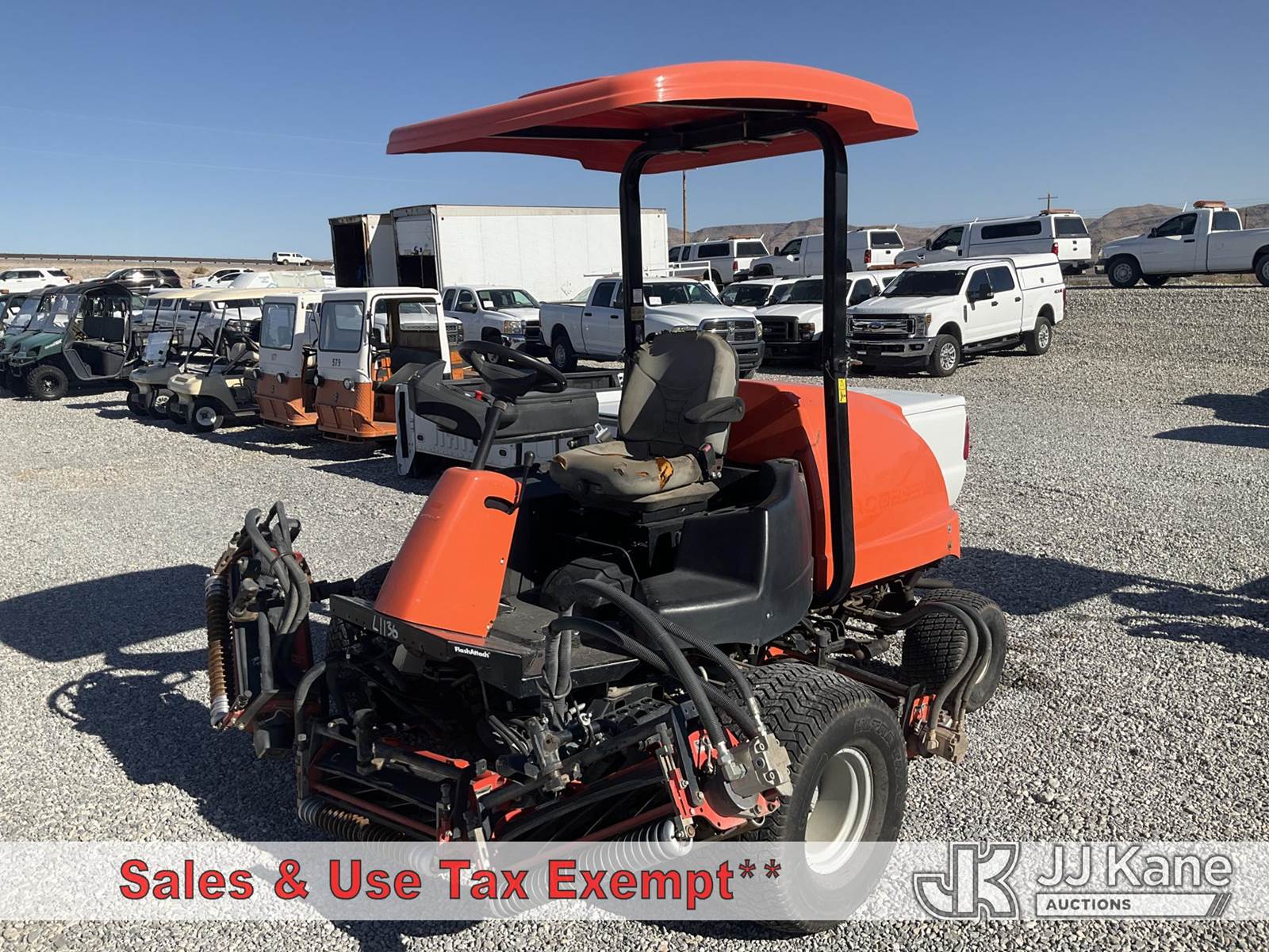 2015 Jacobsen LF570 Lawn Mower, Hydrostatic, diesel, (Runs, Moves, Operates) (Check Engine Light, Hours Unknown - Will Not Display) This is a Titled Item NOTE: This unit is being sold AS IS/WHERE IS via Timed Auction and is located in Las Vegas, NV. Inspection & preview days for this unit are the 2 business days prior to the first day of items closing for this auction, item is located at 14655 Grand Valley Pkwy Las Vegas, NV 89165 and hours of operations are 8a-4p. Titles executed exactly as bidder registered. Ensure your name and/or business name and address in JJ Kane and/or ProxiBid is correct before bidding. For pre-sale questions, please contact Office Staff @ (801) 519-0123 and provide sale date and lot number. Las Vegas Dealer License Number DLR000053086 / OHV000053094. (Buyer is responsible for removal. Assistance by consignor or JJ Kane Auctioneers is not assured.)