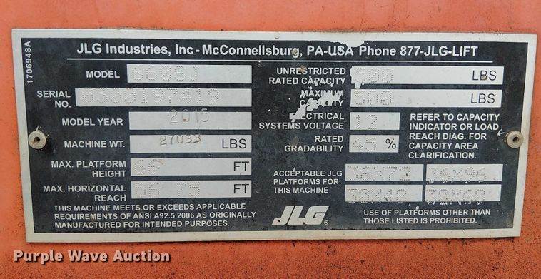 2015 JLG 660SJ boom lift