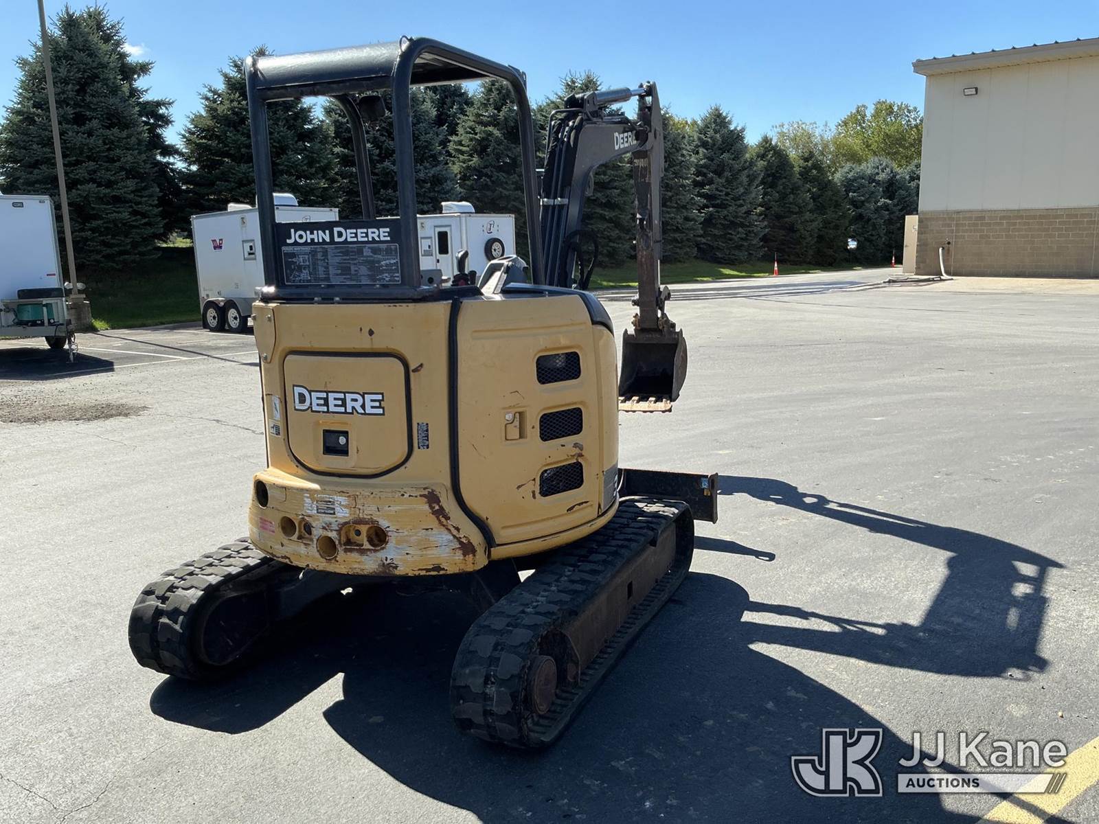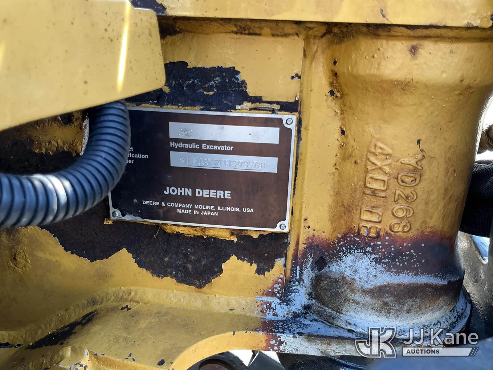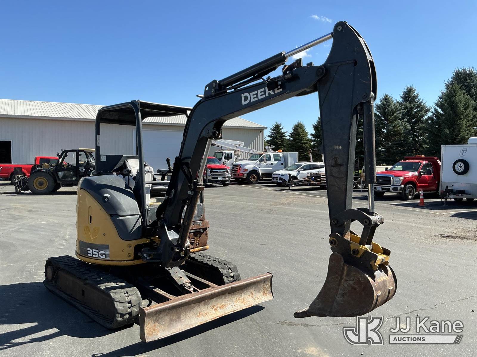 2015 John Deere 35G Mini Hydraulic Excavator, s/n 1FF035GXEFK273578, Yanmar Hydraulic Drive, diesel, with Rubber Tracks, Backfill Blade,12in Digging Buckets, ROPS, (Runs & Operates) (Reads 4,199 hours) NOTE: This unit is being sold AS IS/WHERE IS via Timed Auction and is located in Maple Lake, MN. For specific technical information or questions about this item, contact Ben Boucher at (612) 616-2798. For load-out and pick information, reference the hauler sheet sent out after purchase. These items are used and may contain defects that are not immediately detectable. Text descriptions and photos given are meant to be used as a guide only. The conditions are provided by the consignor. The Buyer is responsible for inspecting the item before bidding. Purchaser acknowledges ALL lots must be removed within 10 business days of the Auction, or a storage fee may be incurred. All information provided is believed to be correct but no warranty as such is either intended or implied. All items are sold AS IS - WHERE IS AND WITH ALL FAULTS AND DEFECTS THEREIN. (Buyer is responsible for removal. Assistance by consignor or JJ Kane Auctioneers is not assured.)
