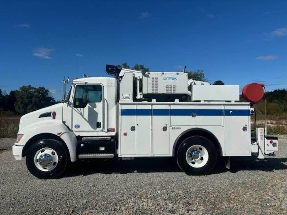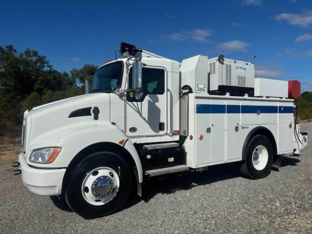 2015 Kenworth T270 --- Single Axle, PX7 PACCAR 300 HP, Allison Automatic 5 speed, 5.29 Ratio, 10,000 Front Axle, 16,000 Rear Axle, 153" Wheelbase, 12' 9" Bridge, Spring, Air Brake, Exhaust Brake, Differential Lock, Reese Hitch, 11.6' Steel Adkins Body, Steel Wheels, Single Stack, Aluminum Fuel Tank, Daylite Doors, Peep Window, High Level Interior, Chrome Gauge Package, Heated Mirrors, Cruise Control, Tilt Steering Wheel, AM/FM CD, Passenger Power Window, P/L, P/S, AC.
