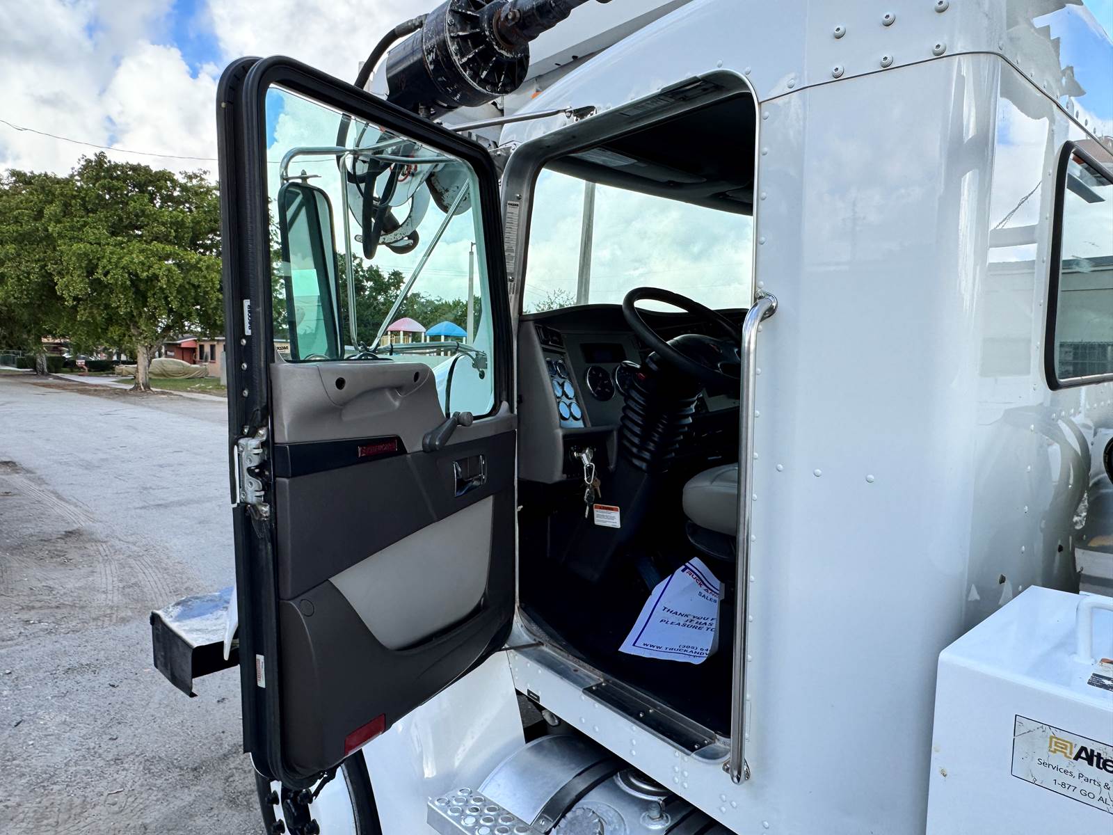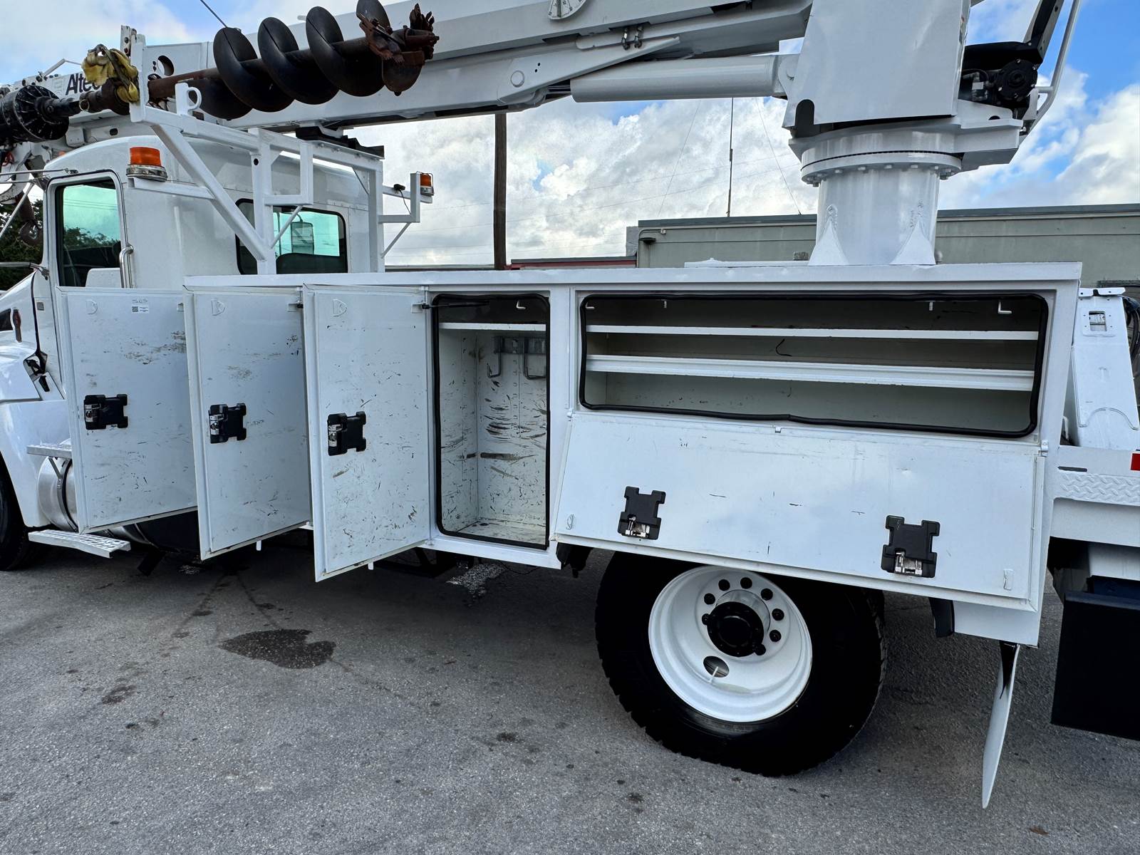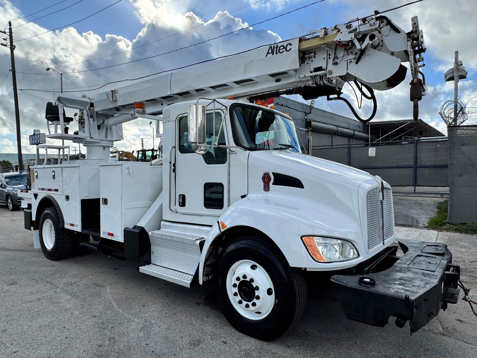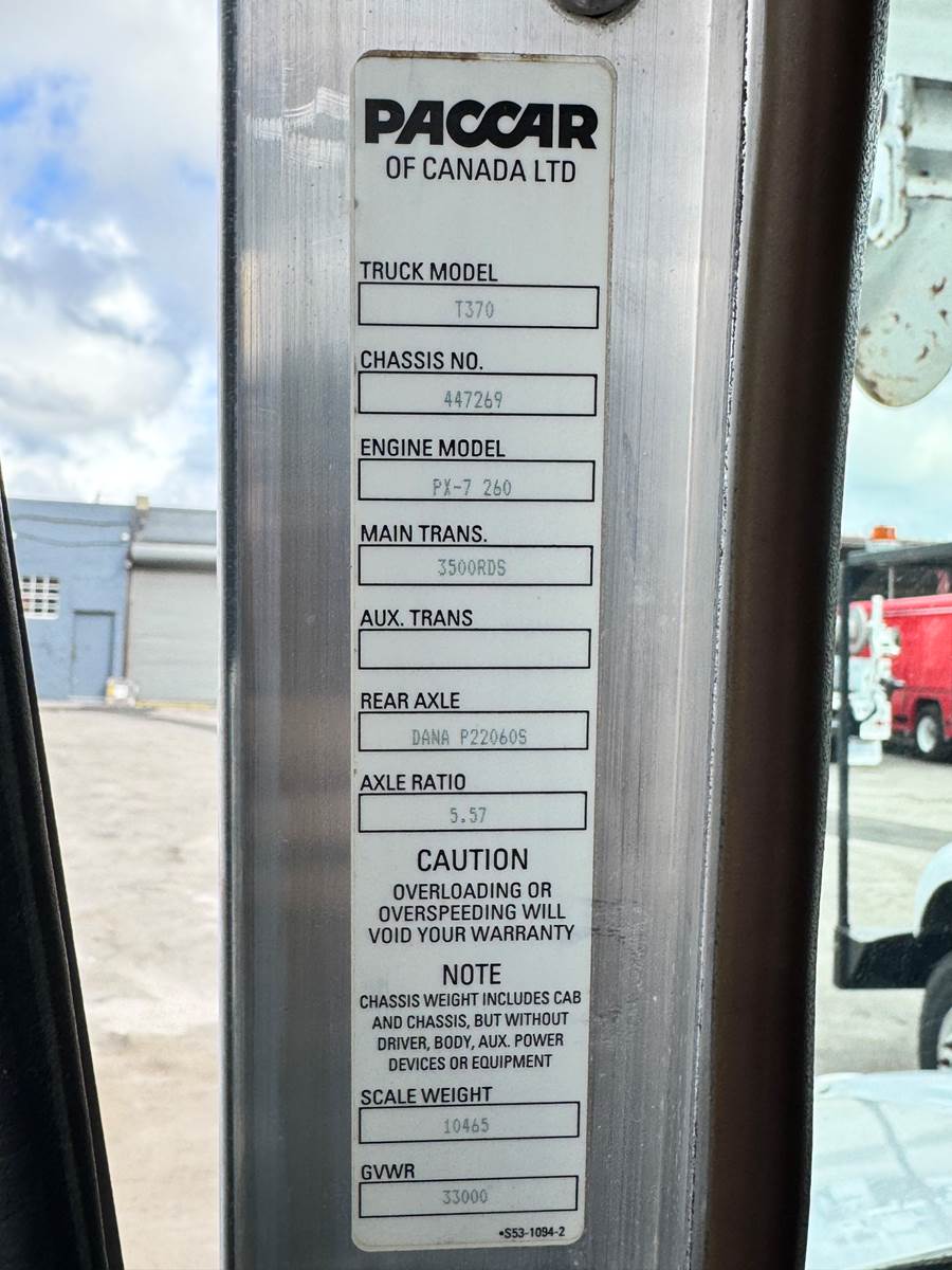 The 2015 Kenworth T370 equipped with an Altec DM47B digger derrick is a dependable heavy-duty work truck designed for line construction, pole setting, and utility maintenance operations. It’s powered by a PACCAR PX-7 6.7L turbo diesel engine producing 260 horsepower, paired with an Allison 3500RDS automatic transmission for consistent power delivery and smooth performance. With a 33,000 lb GVWR and Class 7 heavy-duty chassis, it offers an excellent balance of strength, reliability, and maneuverability for demanding jobsite conditions