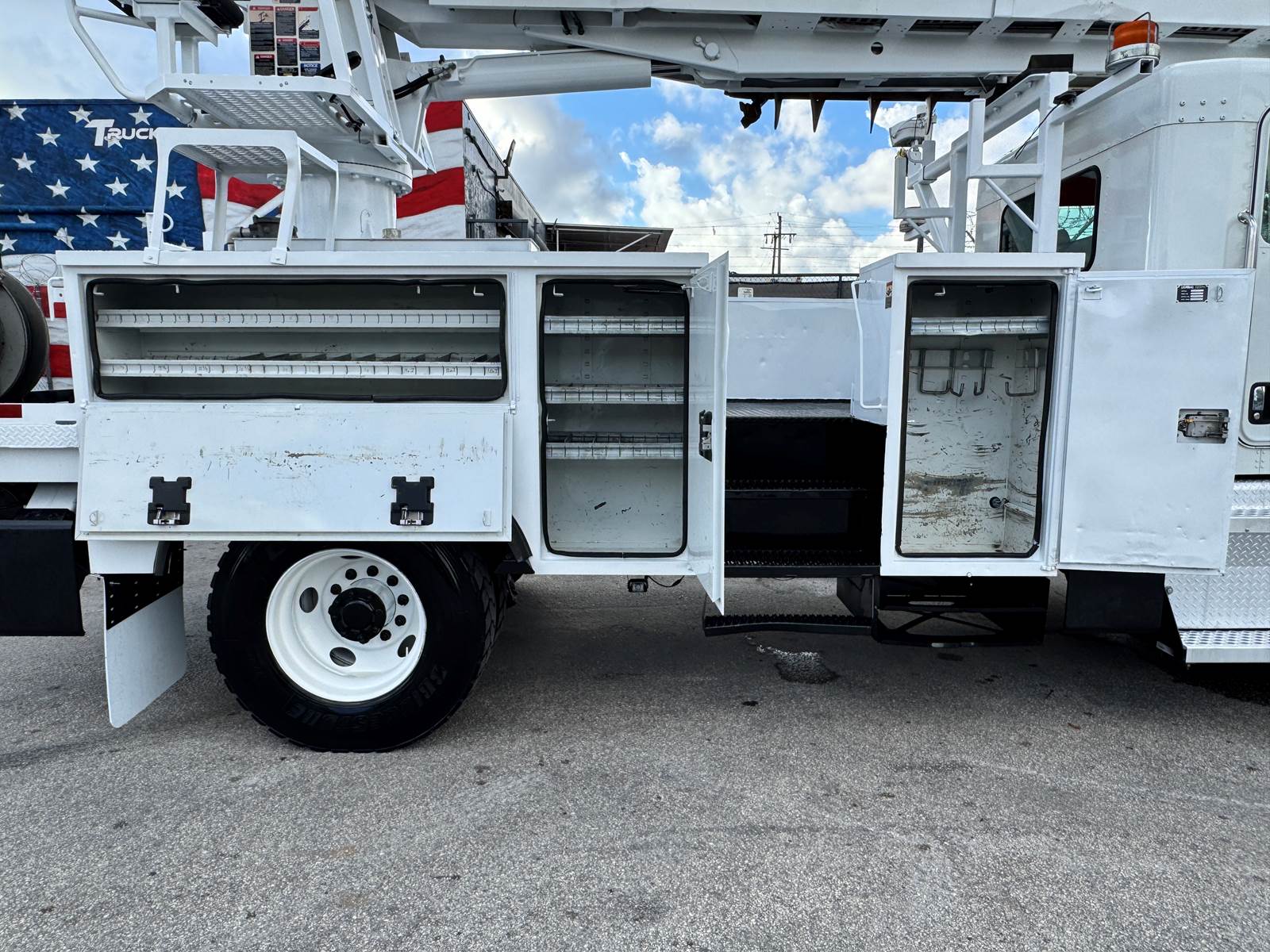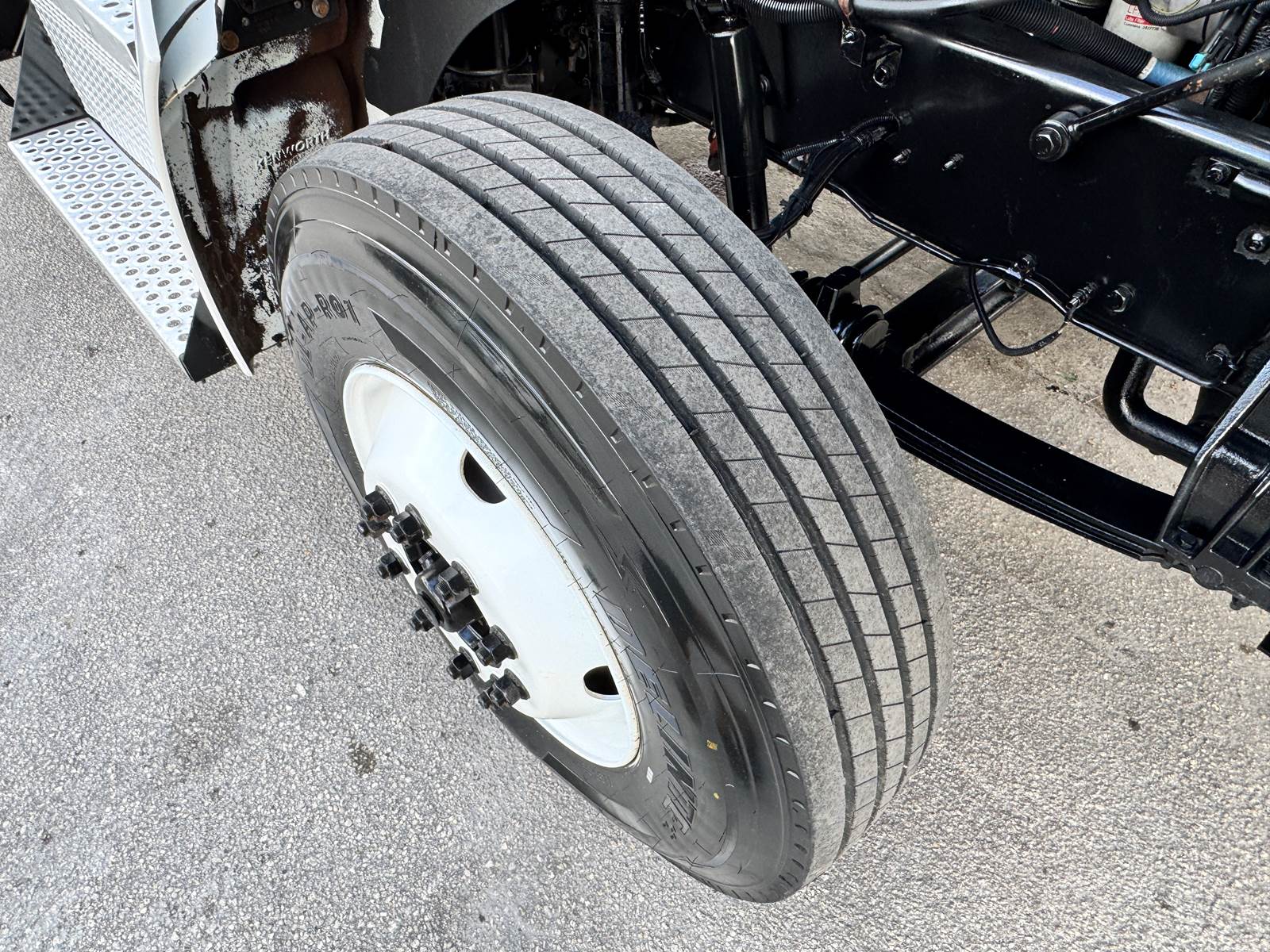 Configured with a 12-foot steel utility body, pintle hitch tow package, and capstan winch, the truck is built to handle both line and construction support roles. Suspension consists of spring front and air rear axles rated at 13,000 lbs and 20,000 lbs respectively, delivering ride comfort and load stability. Additional features include a high-flow piston pump and dual rear wheels, making it a capable and versatile platform for daily operations.