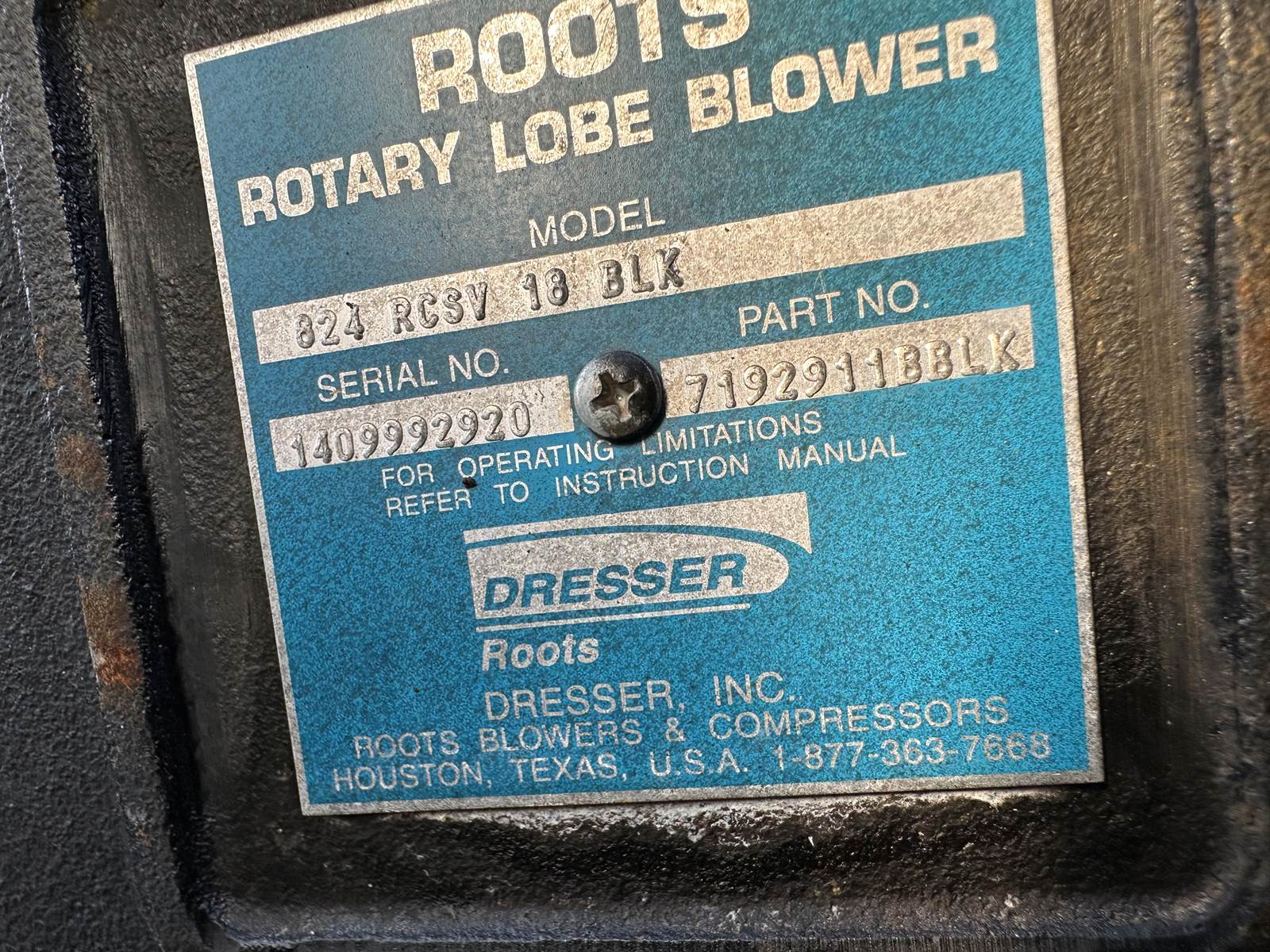 Root 824 RCSV 18 PD Blower ( Vacuum )