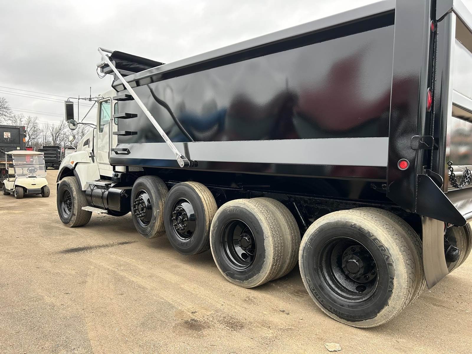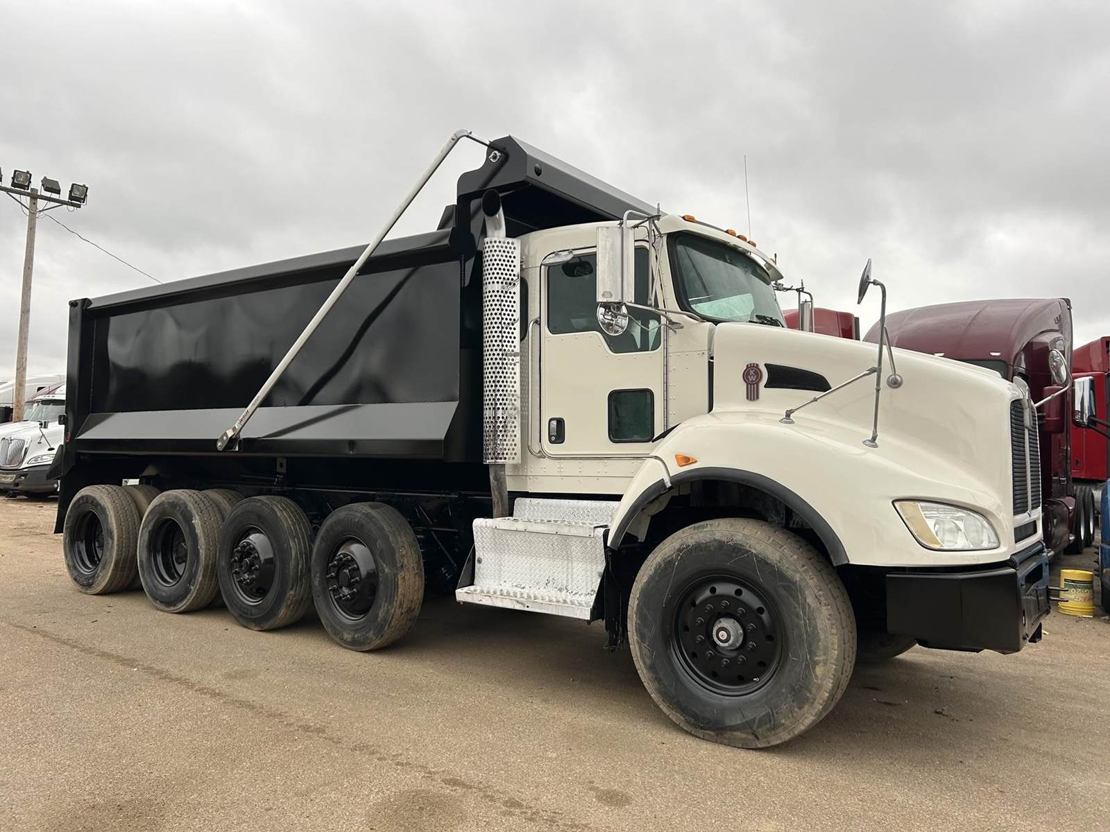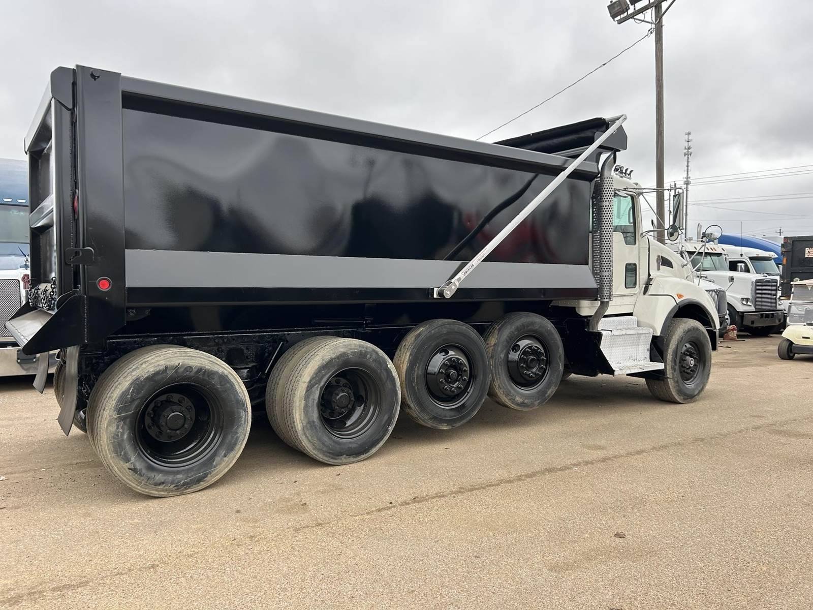 GOOD TRUCK, RUNS EXCELLENT, AIR SEAT, DOUBLE FRAME, FULL LOCKING REARS, FLOATS, DUAL STEERABLE LIFT AXLES, NEW BED, AIR GATE, ELECTRIC TARP, LOW MILES!