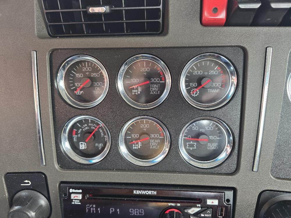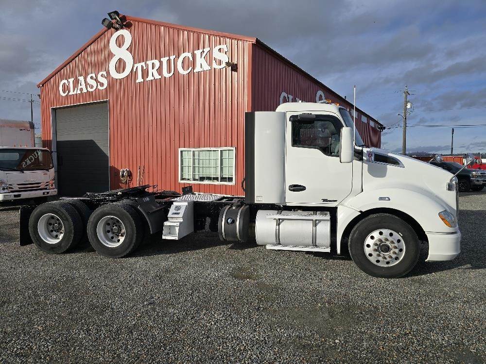 T680 Kenworth day cab, 485 horsepower ,10 speed Automated (automatic) Eaton Fuller transmission. Double lockers in the rear-ends great for off road field work. Runs and drives like new, quiet cab with cold AC. Could be stretched for bed and hoist.