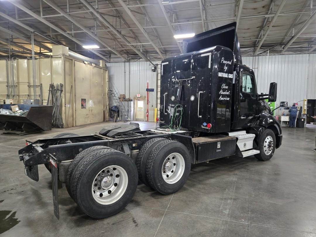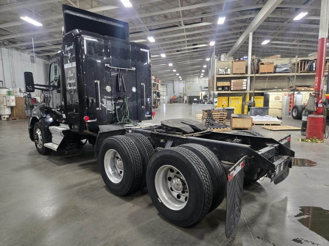 Cummins 385 Turbo CNG Engine, 10 Speed Eaton Fuller Manual Transmission, Inter Axle Lock, GVWR: 52000lbs, Approx. 2' Air Sliding Fifth Wheel, Wind Deflector, Toolbox, Air Ride Suspension, Single Frame, Day Cab, Air Ride Driver Seat, Heat, AC, Radio, Cruise Control, Full Power Locks/Windows/Mirrors, Fire Extractor, Full Aluminum Rims, 295/80R22.5 Tires