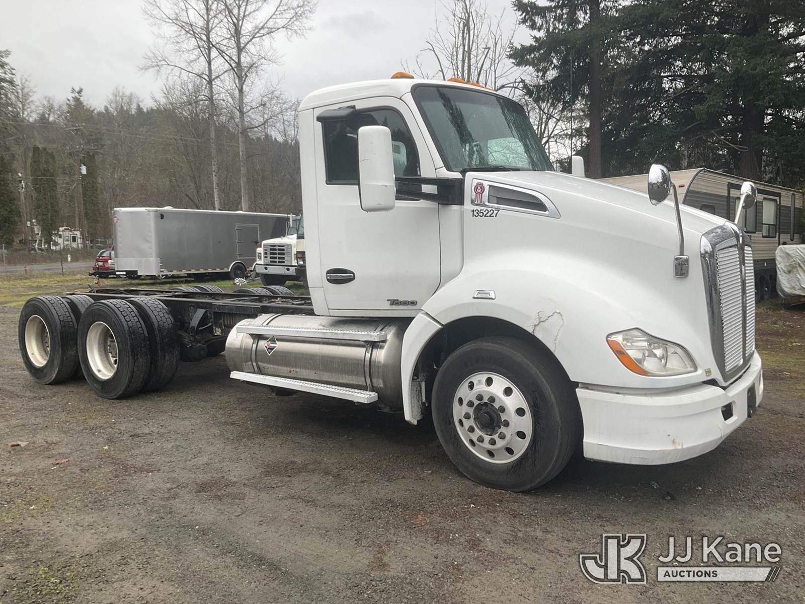 2015 Kenworth T680 T/A Truck Tractor, s/n 1NKYD39X0FJ454775, Cummins 11.9L CNG 10-spd, A/C, (198,630 miles) (Not Running, Condition Unknown, Check Engine Light On, Body Damage) (Unit Will Need to Be Towed, Buyer Responsible For Loadout) This is a Titled Item NOTE: This unit is being sold AS IS/WHERE IS via Timed Auction and is located in Eatonville, WA. Inspection & preview days for this unit are by appointment only; please contact us at contact@jjkane.com or 84-Go-JJKane for more details. (Buyer is responsible for removal. Assistance by consignor or JJ Kane Auctions is not assured.)