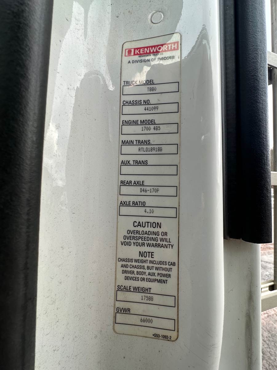 2015 Kenworth T880 Tandem Axle Fuel Tanker- 485 HP Paccar MX13 Diesel, Eaton 18-Spd. Manual Trans, Boston 5,000ga. Capacity Tank (2000,1000,1000,500,500), LCR II, Toolbox/Storage, 2 Hose Reels (1 3/8" & 2"), GVWR- 66,000, Scale Weight- 17,588, Wheelbase- 244", 244,708 Miles 11,707 Hrs., 4.10 Ratio, Air Glide Suspension, 11R22.5, CALL FOR VIDEOS!!!
