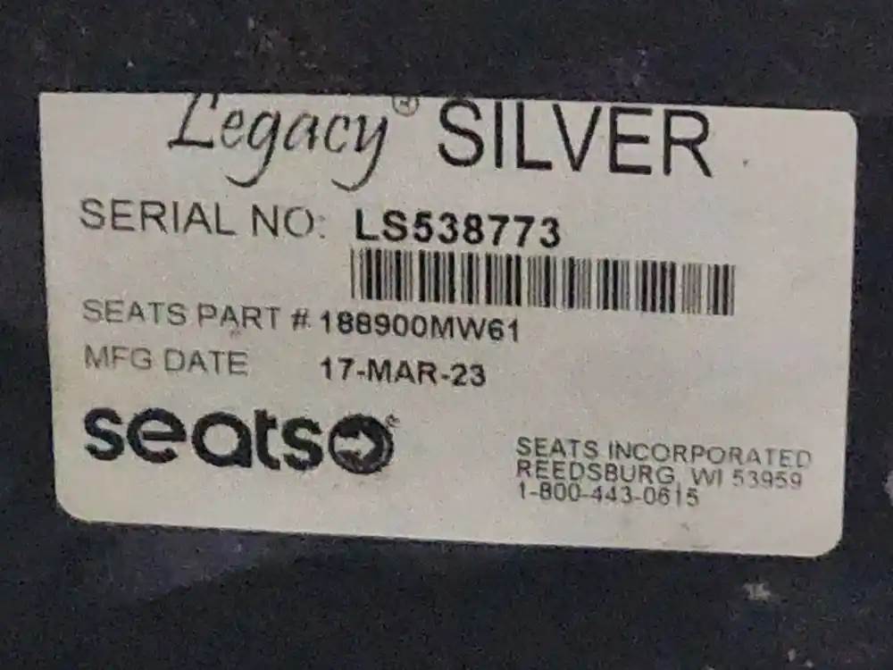 (Used) 2015 Kenworth T880, SEAT- Part Number: 188900MW61, Side: Driver Left Side, Color: Black, Material: Vinyl, Type: Air Ride, Reference images for condition, For more information about this item, give us a call. We ship Worldwide! (CRG HEAVY TRUCK PARTS) 929 W PULASKI HWY, ELKTON, MD 21921, Seat Make: Legacy