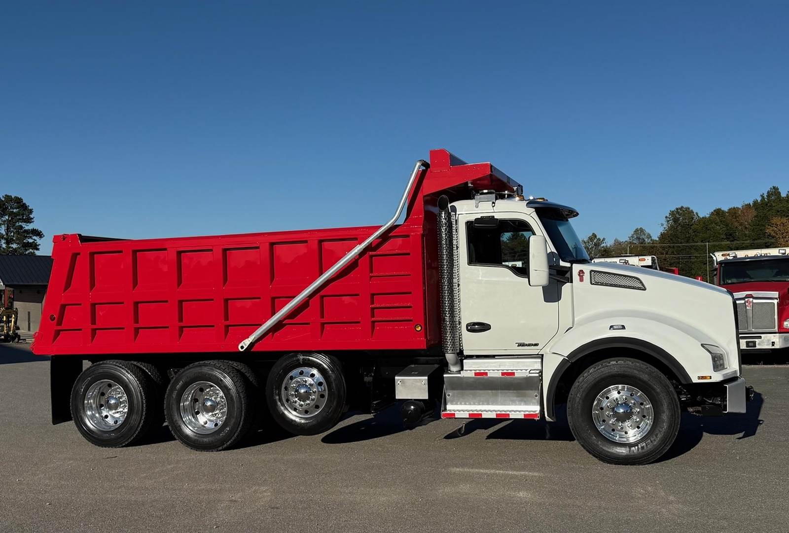 Triaxle, 17.5' Rogers Steel Dump w/50" Sides, X15 Cummins 500 HP, Allison Automatic 6 Speed, 5.38 Ratio, 3 Stage Engine Brake, HaulMaax, Double Frame, 20K FA, 46K RA, 13,500 Steerable L/A, 222" WB, 20'10" Bridge, Dual P/S Boxes, Diff Lock, Electric Tarp, Air Tailgate, Bed Vibrator, P/S, A/C, AM/FM Bluetooth, Heated Mirrors, Cruise, Tilt/Tele Wheel, Power Windows, Locks, and Mirrors, Dual High Back Seats, 100 Gallon Aluminum Fuel Tank, 425/65R22.5 Steer Tires on Aluminum Wheels, 11R24.5 Drive Tires on Aluminum Wheels Outside, Aluminum Bumper