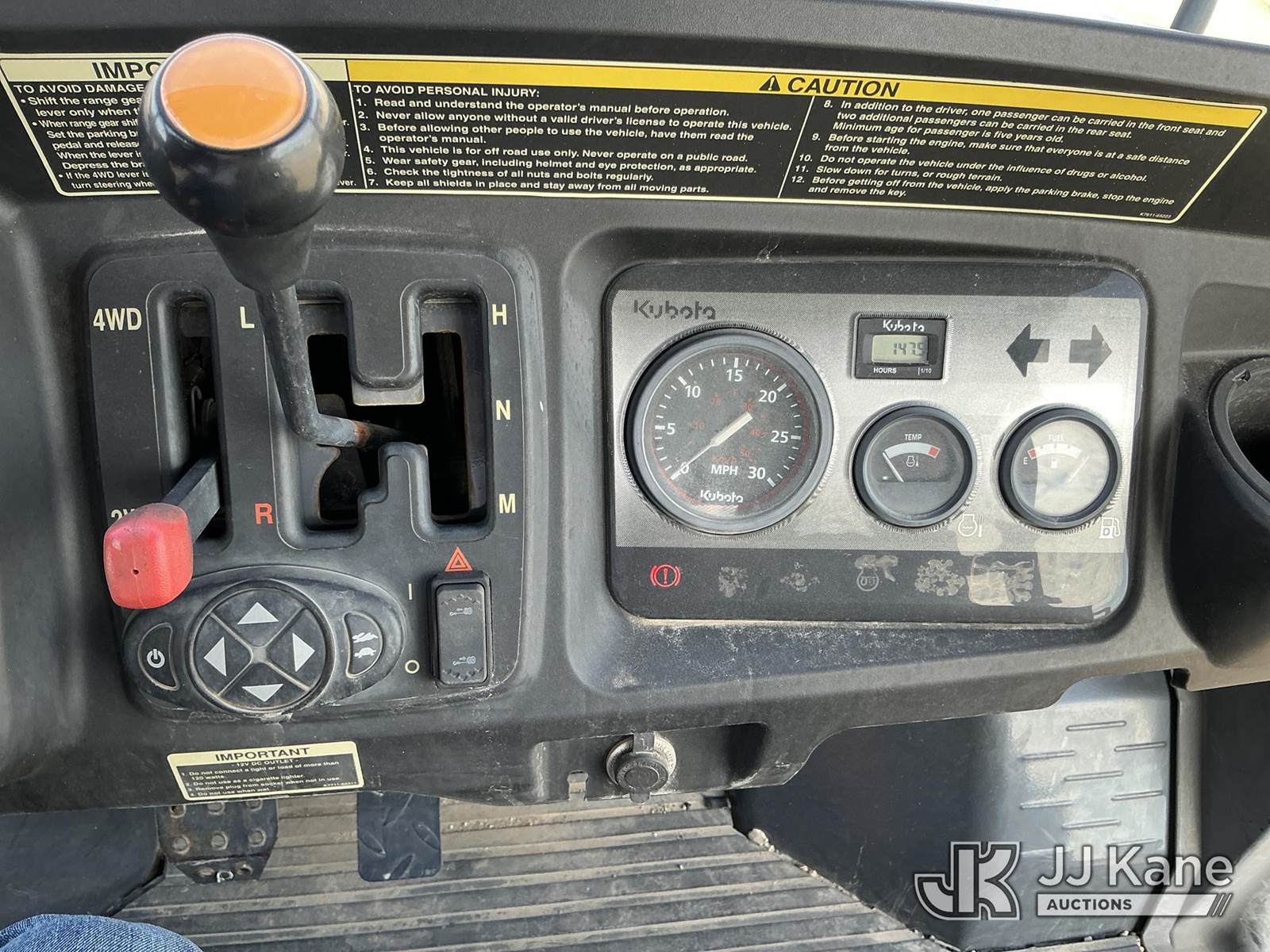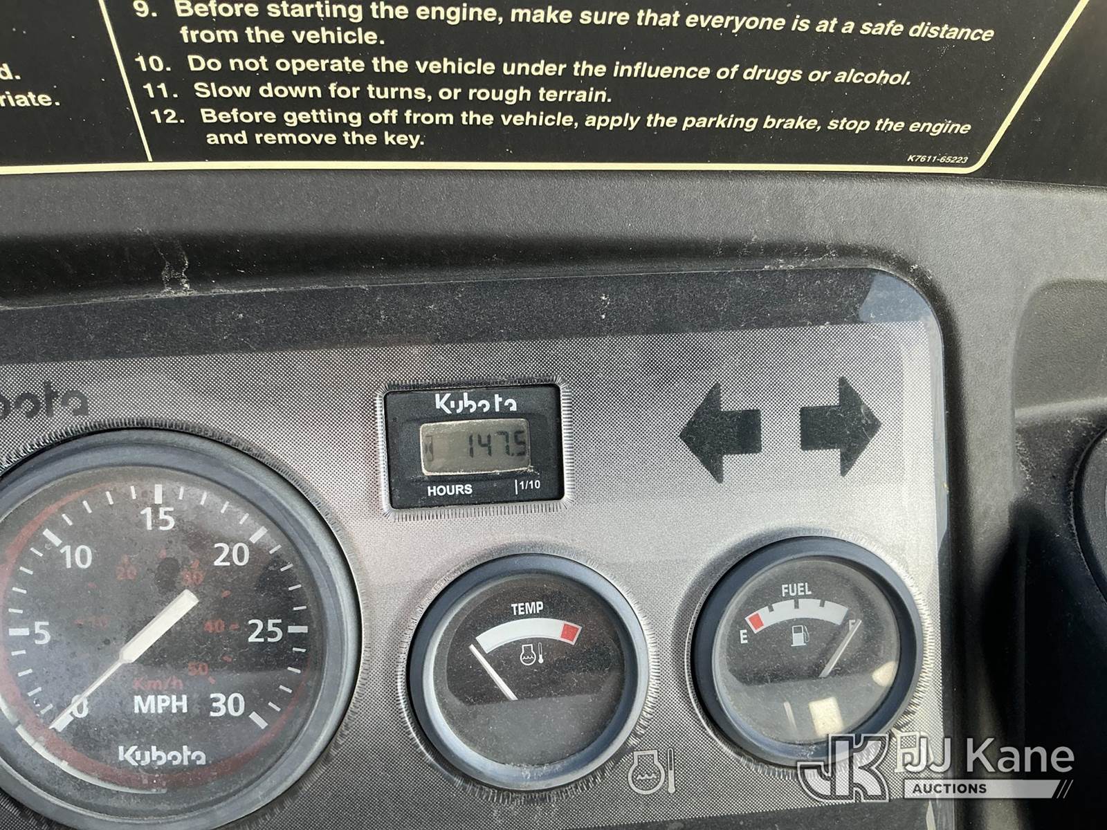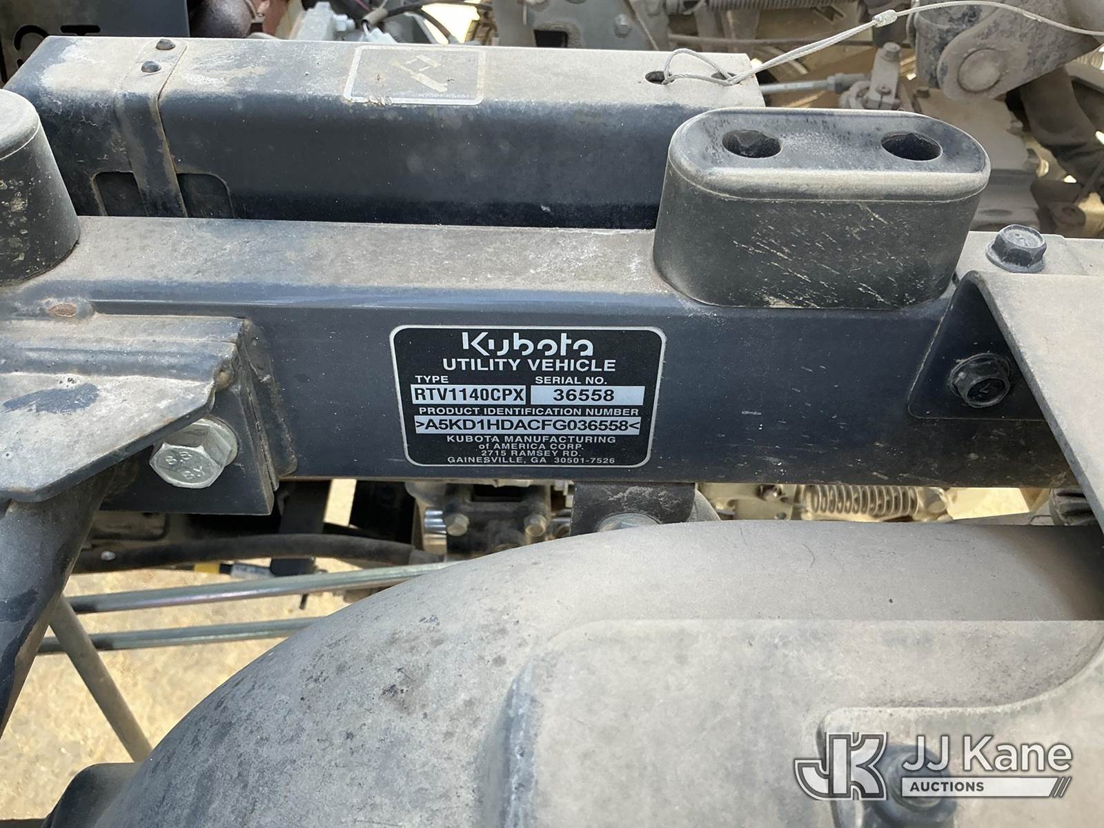 2015 Kubota RTV1140CPX All-Terrain Vehicle, Auto, diesel, with front winch, grill guard, dump bed, Co-Operative Owned & Maintained (Runs & Moves) (Reads 148 hours) This is a Titled Item NOTE: This unit is being sold AS IS/WHERE IS via Timed Auction and is located in Johnson City, TX. For more information & removal arrangements please contact Charlie de Kanter @ 281-910-7147. Removal by appointment only, Buyer/Hauler must present copy of paid invoice upon arrival. Purchaser acknowledges ALL lots must be removed within 7 business days of Auction, or a storage fee may be incurred. For Removal and Pick Up information, please reference the release form sent out after purchase. (Buyer is responsible for removal. Assistance by consignor or JJ Kane Auctions is not assured.)