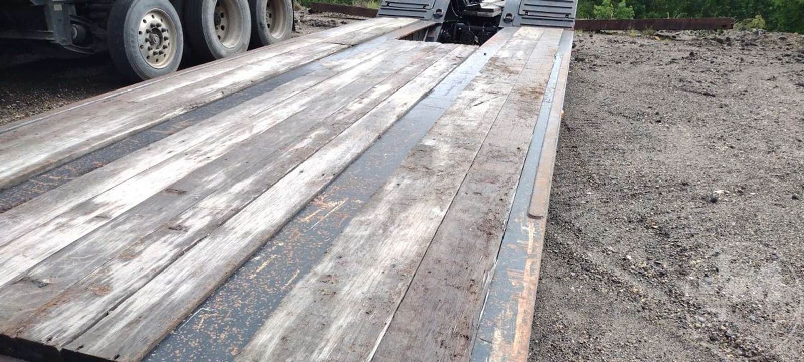 MECHANICAL RGN LOWBOY TRAILER, 30 TON, OUTRIGGERS, 8'6" WIDE, AIR RIDE SUSPENSION, WOOD DECKING, ALUMINUM OUTSIDE DISC WHEELS, 255/70R22.5...