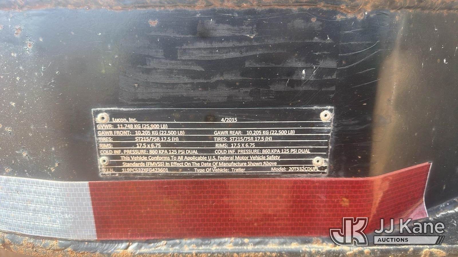 2015 Lucon Inc. 20T532CDUPL, 20-Ton T/A Tagalong Flatbed Trailer, (Runs & Operates) This is a Titled Item NOTE: This unit is being sold AS IS/WHERE IS via Timed Auction and is located in Oklahoma City, OK. Inspection & preview days for this unit are by appointment only; please contact us at contact@jjkane.com or 84-Go-JJKane for more details. (Buyer is responsible for removal. Assistance by consignor or JJ Kane Auctions is not assured.)