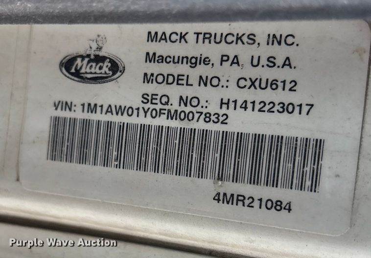 2015 Mack CXU612 semi truck