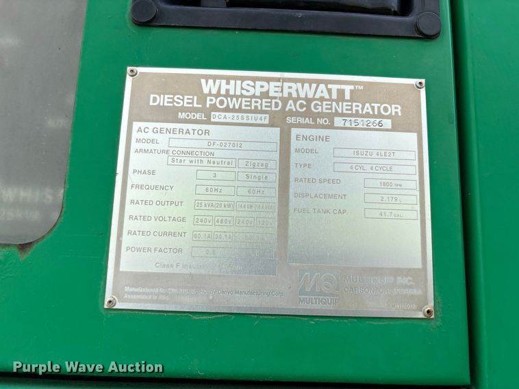 2015 Multiquip WhisperWattDCA-25SSIU4F generator