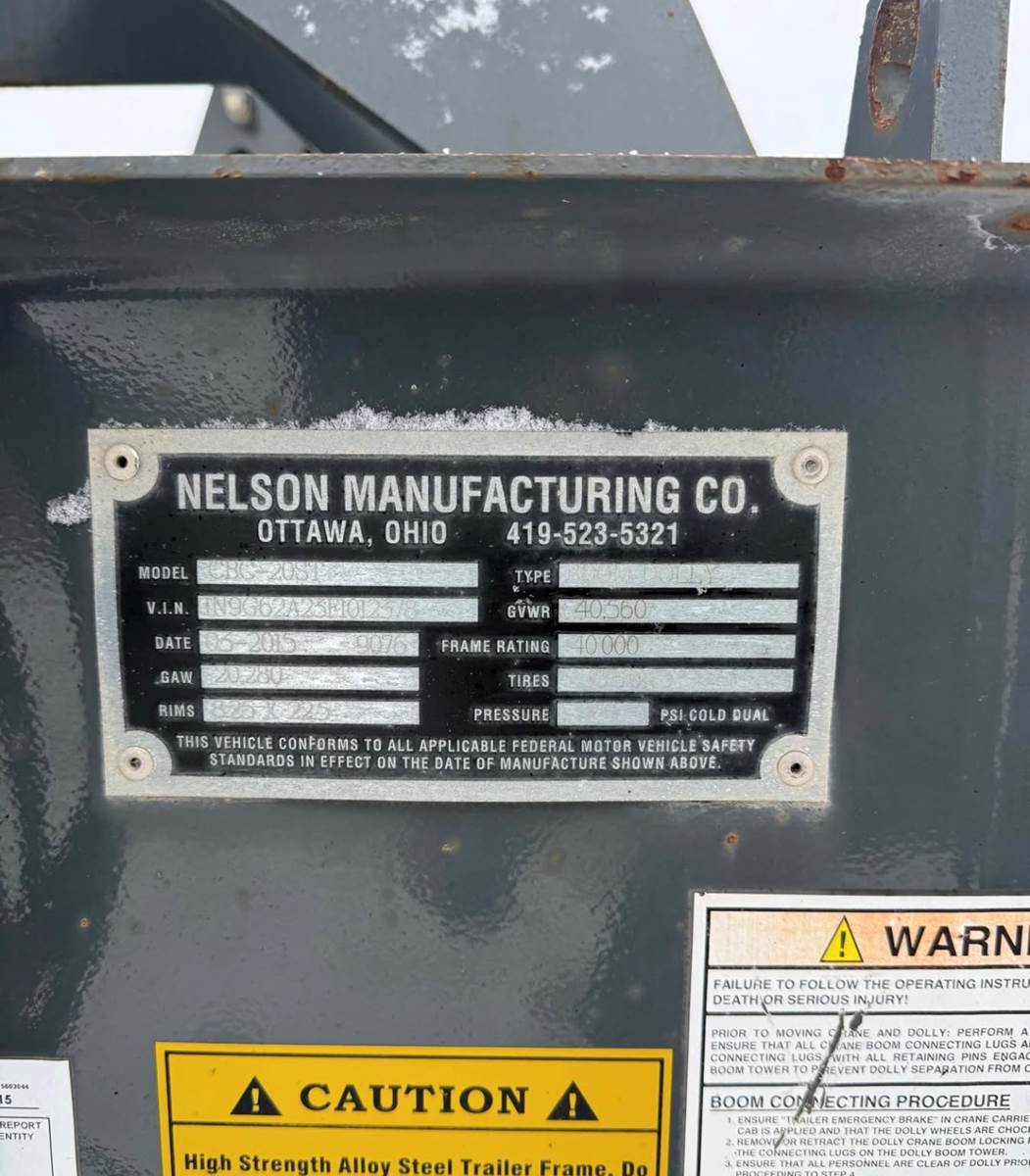 2015 2-axle Nelson cran boom dolly