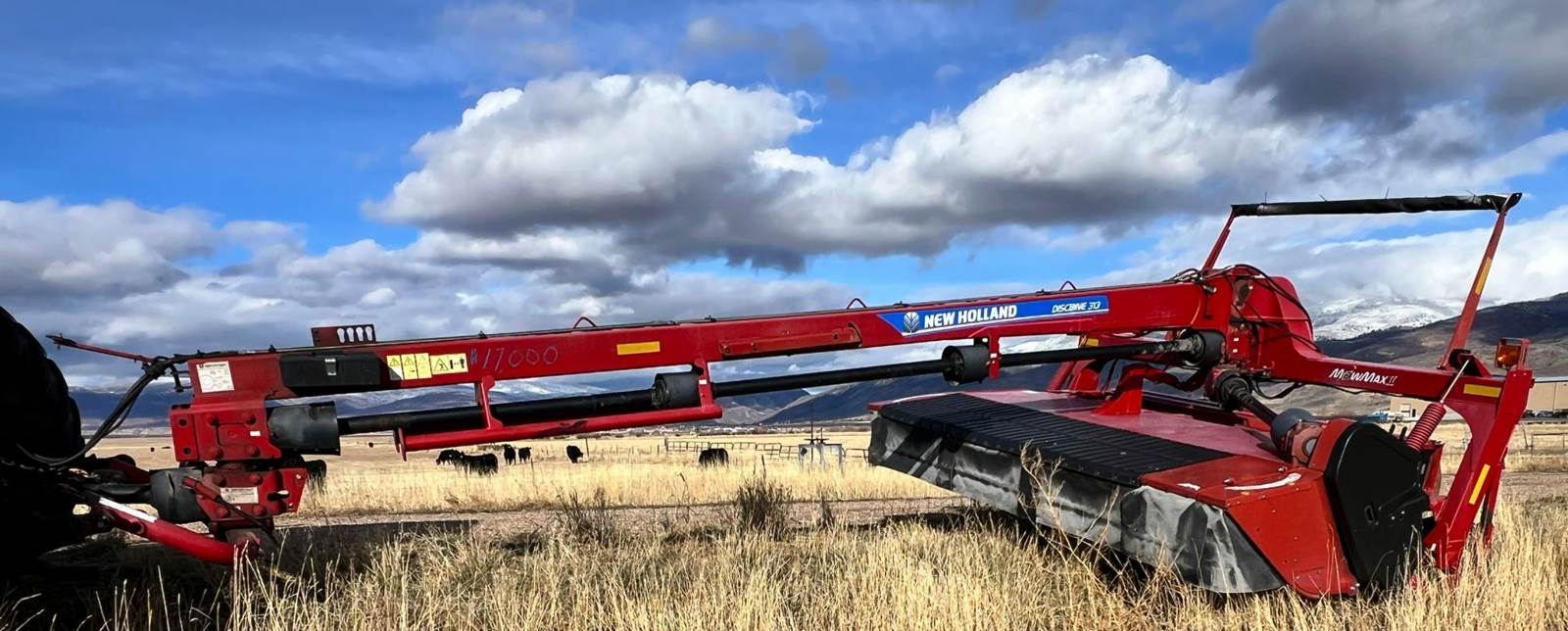 2015 New Holland Discbine 313FDB, Swather windrower, 13'1" cut, 6-disc modular cutterbar, flail conditioner, drawbar swivel hitch, 1000 RPM PTO, QuickMax knives, hydraulic tilt, transport lights, 12.5L-15 tires, excellent condition, low hours, replaced the plate this season, new skid shoes come with it, serial YFN255591, financing available, call for more details. #NewHollandDiscbine, #Discbine313, #13FootSwather, #FlailConditioner, #HaySwatherForSale,