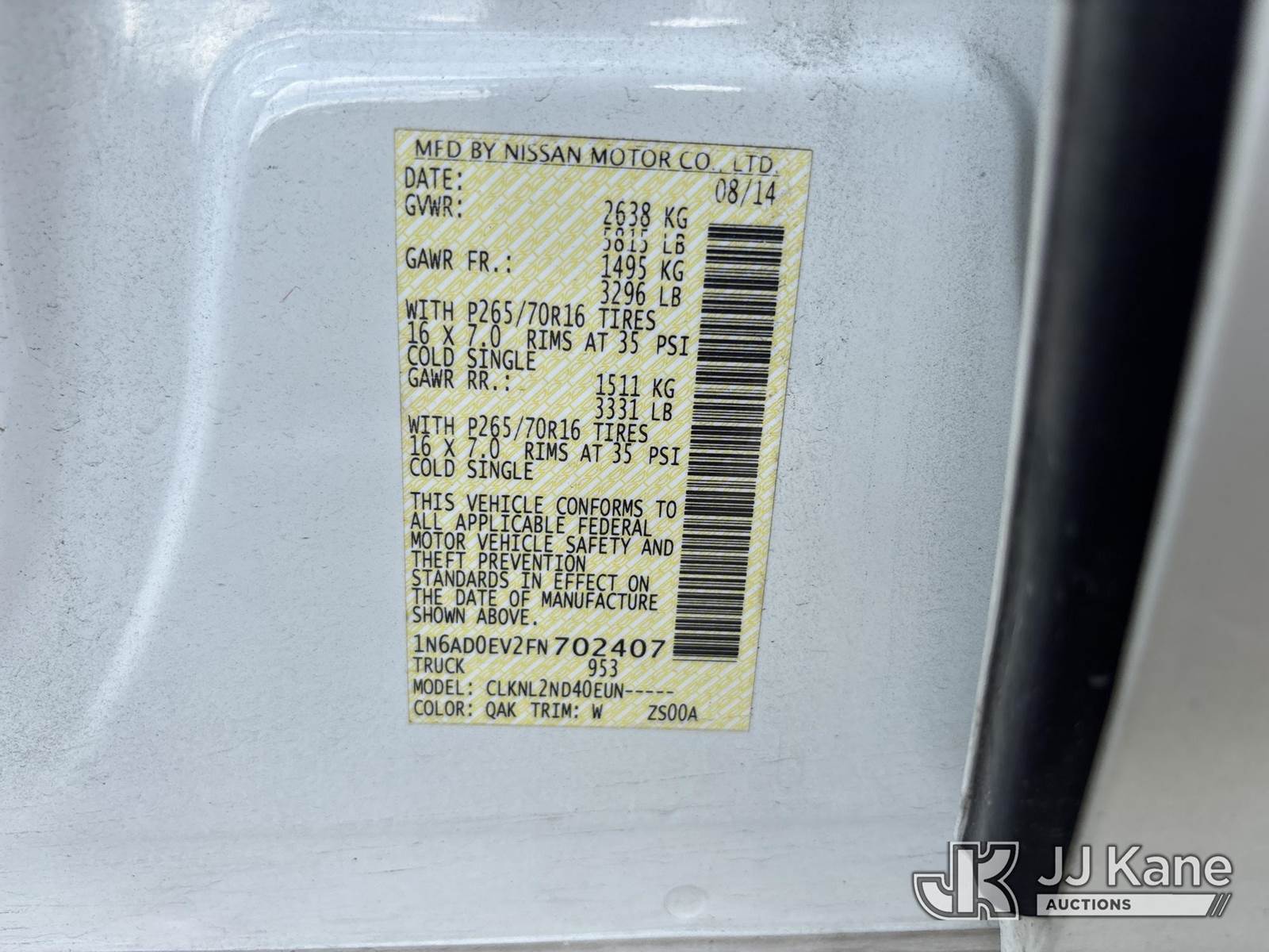 2015 Nissan Frontier 4x4 Crew-Cab Pickup Truck, 6-cyl gas, Auto, A/C, (207,739 miles) (Runs & Moves) (Body/Paint Damage) (FL Residents Purchasing Titled Items - tax, title & registration fees will be collected at the maximum rate of $400.00 under 25,999 and $800.00 for Over 26,000 and $250.00 trailers - Proof of insurance is mandatory; Out of State Residents Purchasing Title Items - tax will be collected based upon your state rate.) This is a Titled Item NOTE: This unit is being sold AS IS/WHERE IS via Timed Auction and is located in Westlake, FL. Inspection & preview days for this unit are the 2 business days prior to the first day of items closing for this auction, item is located at 4003 Seminole Pratt Whitney Rd Westlake, FL 33470 and hours of operations are 8a-4p. For pre-sale questions, please contact: Matt Johnson @ (205) 847-9106. (Buyer is responsible for removal. Assistance by consignor or JJ Kane Auctioneers is not assured.)