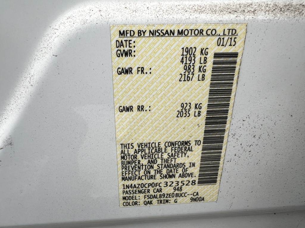Location: Washougal WA ***City Government Surplus*** VIN: 1N4AZ0CP0FC323528 Engine: Electric Transmission: Automatic Rearview camera, power windows, power mirrors, power locks, bluetooth, A/C, AM/FM/CD, 205/55R16 tires. Miles: 16,177 indicated