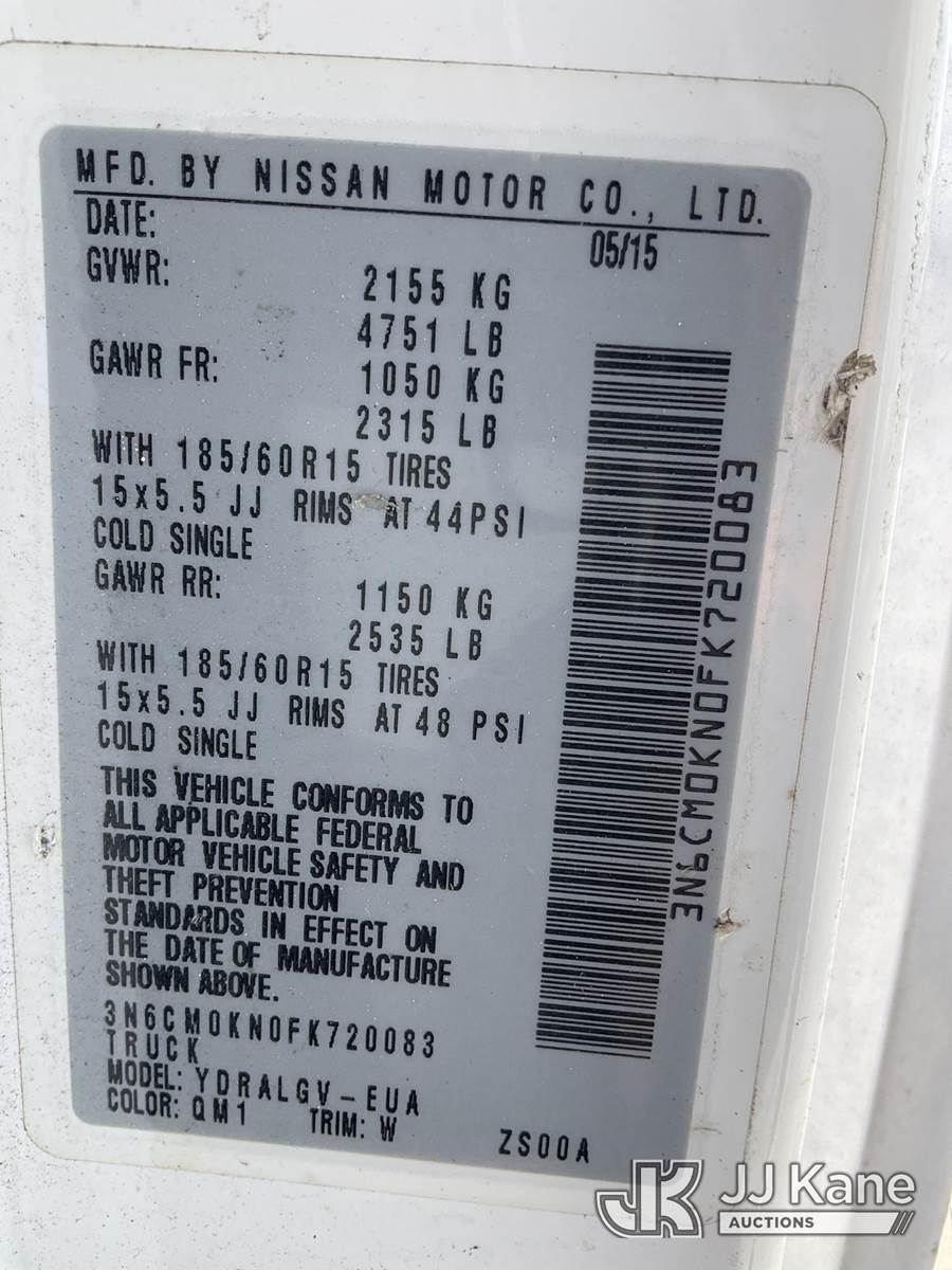 2015 Nissan NV200 Cargo Van, 2.0L L4 DOHC 16V FWD, Gas, Auto, A/C, True Mileage Unknown (Runs & Moves With Jump, Engine Knocks & Shuts Off, Unit Must Be Hauled Away, Body Damage & Rust, Paint & Interior Damage, Cracked Front Windshield, Passenger Side Cargo Door Does Not Open) (FL Residents Purchasing Titled Items – tax, title & registration fees will be collected at the maximum rate of $400.00 under 25,999 and $800.00 for Over 26,000 and $250.00 for Trailers – Proof of insurance is mandatory; Out of State Residents Purchasing Title Items – tax will be collected based upon your state rate) This is a Titled Item NOTE: This unit is being sold AS IS/WHERE IS via Timed Auction and is located in West Palm Beach, FL. For Pick Up & Removal information, please contact: Andy Garcia @ 561-215-0085. Removals require 24-hr Notice by Appointment Only, Buyer/Hauler must present copy of Paid-in-Full JJ Kane Release Form upon arrival. Purchaser acknowledges ALL lots must be removed within 10 business days of Auction, or a towing & storage fee may be incurred. (Buyer is responsible for removal. Assistance by consignor or JJ Kane Auctions is not assured.)