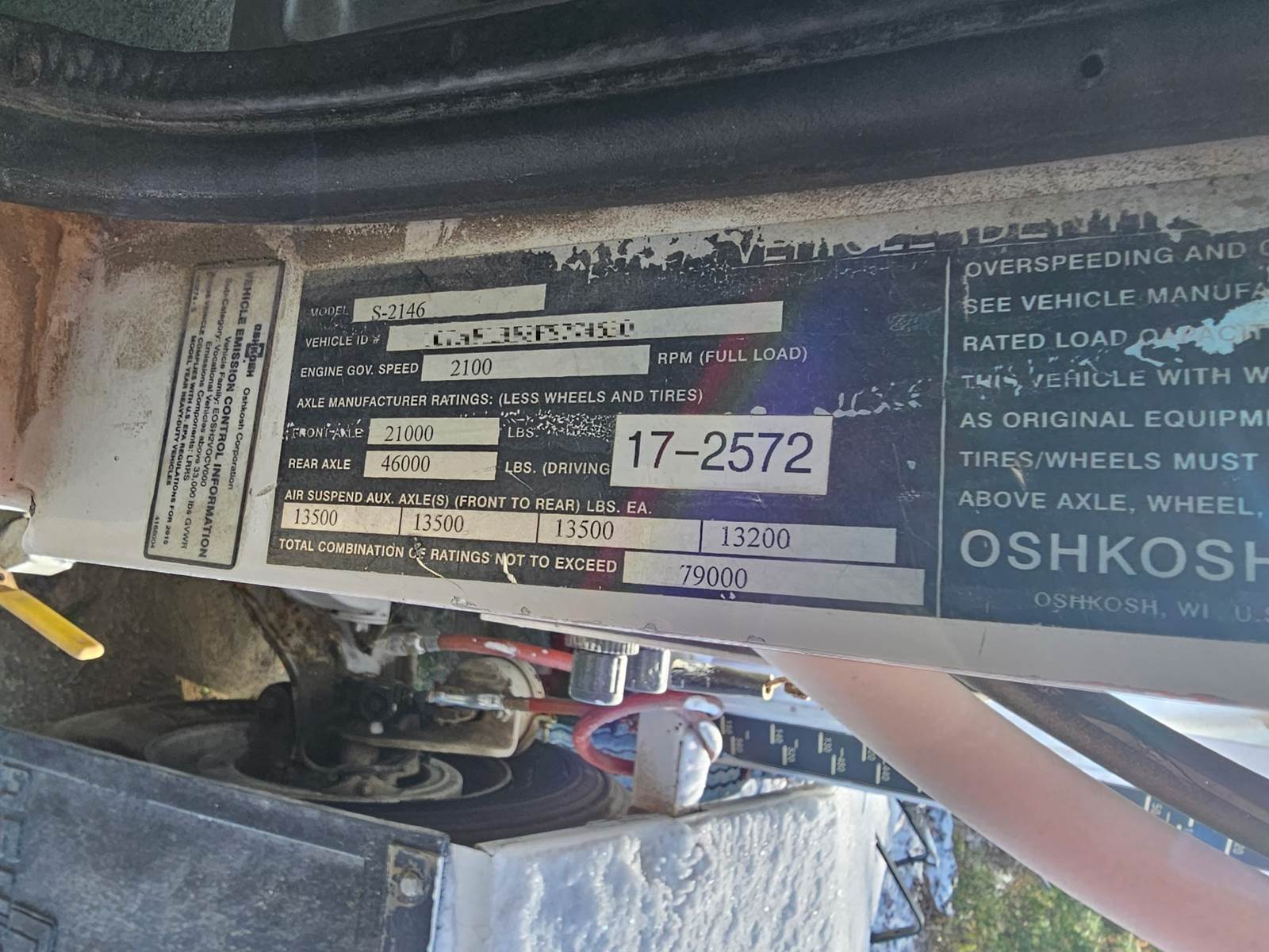 2015 Oshkosh S-2146 Front Discharge Mixer- **FUELED BY CNG** 400HP Cummins ISX Engine, Allison Automatic Trans, Seven Axle- 137,796 Miles (17,723 Hrs.), Differential Lock, GVWR- 79,000 LBS., 21K Front, 46K Rears, Two Steerable Air Lift Pusher Axles, Steerable Air Lift Tag Axle, Trailing Tag Axle, Double Frame, Chalmers Rubber over Walking Beam Suspension, 210" Wheelbase, 11 CY Mixer w/ 4-Removable Chutes. Drum @ 70%, CALL FOR MORE INFO!!!! #2