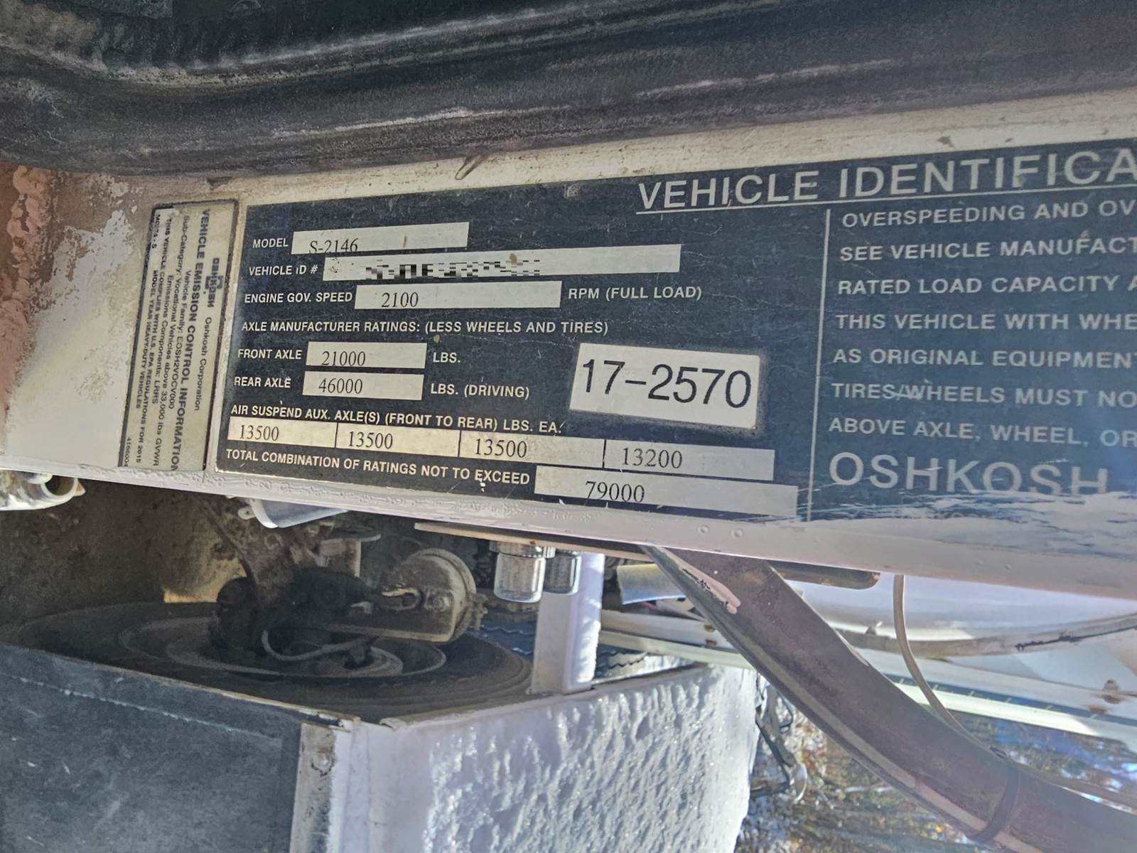 2015 Oshkosh S-2146 Front Discharge Mixer- **FUELED BY CNG** 400HP Cummins ISX Engine, Allison Automatic Trans, Seven Axle- 113,059 Miles (14,591 Hrs.), Differential Lock, GVWR- 79,000 LBS., 21K Front, 46K Rears, Two Steerable Air Lift Pusher Axles, Steerable Air Lift Tag Axle, Trailing Tag Axle, Double Frame, Chalmers Rubber over Walking Beam Suspension, 210" Wheelbase, 11 CY Mixer w/ 4-Removable Chutes. Drum @ 70%, CALL FOR MORE INFO!!!! #1
